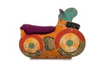 American Mid-Century Carousel hand painted motorcycle design with purple upholstered seat and handles bars (similar to 051561)