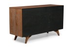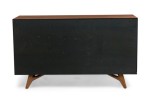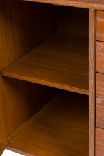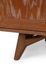American Mid-Century dark stained cerused oak dresser with 2 doors centering four drawers (2 small above two large) and resting on low slanted legs (IDENTICAL CHEST IN NEW YORK: REG4036)