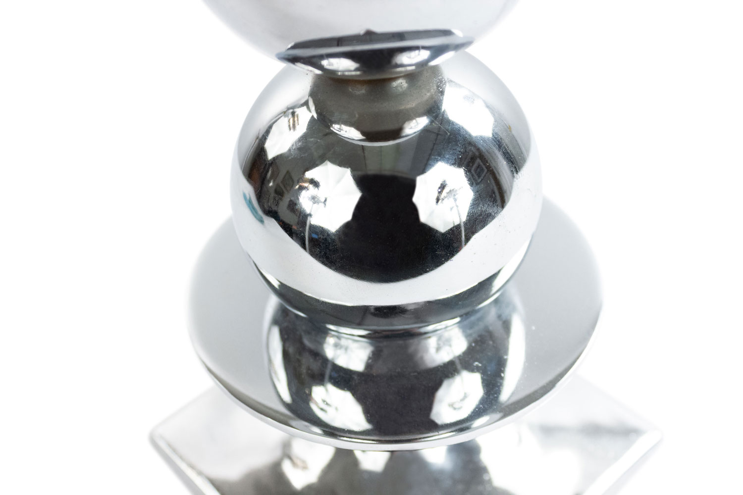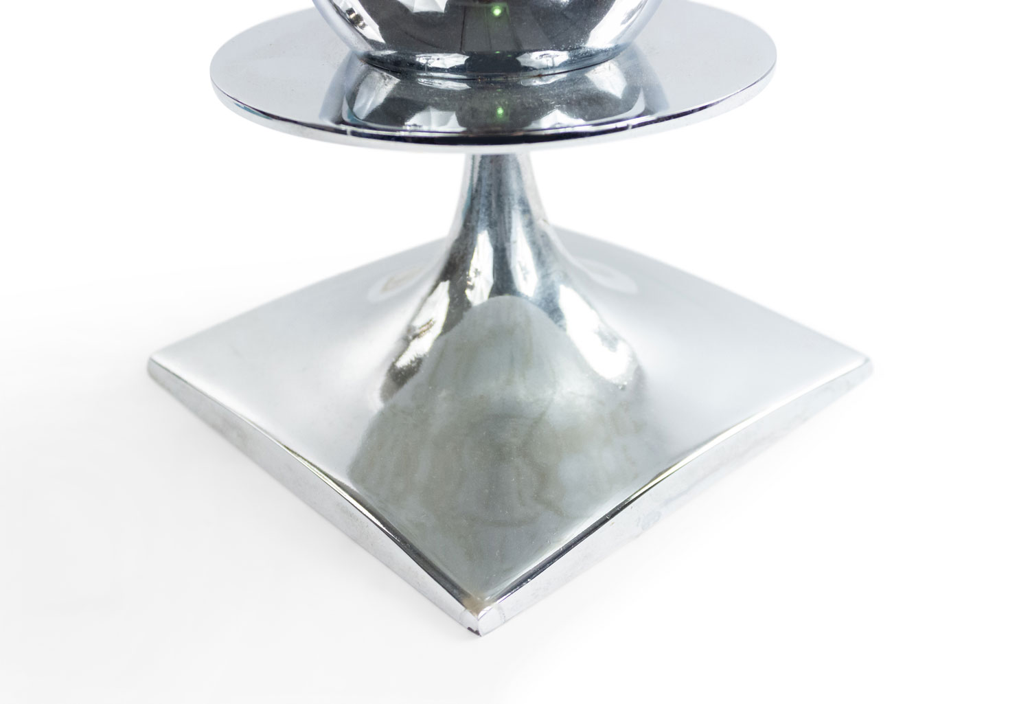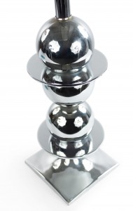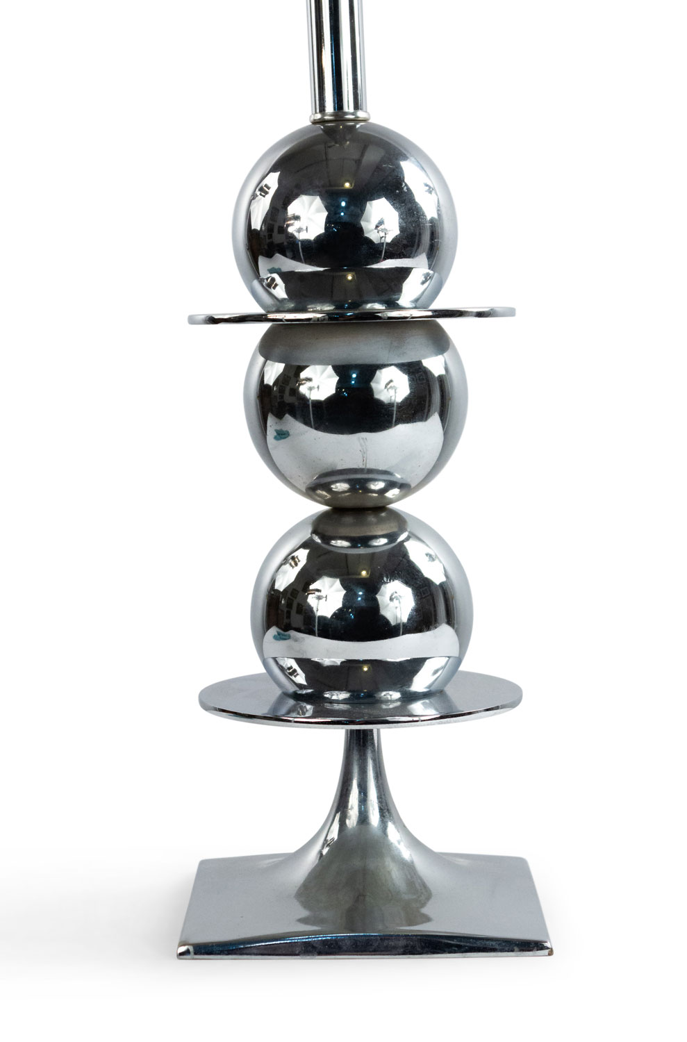 American Mid-Century chrome table lamp composed of discs and spheres on a square base.