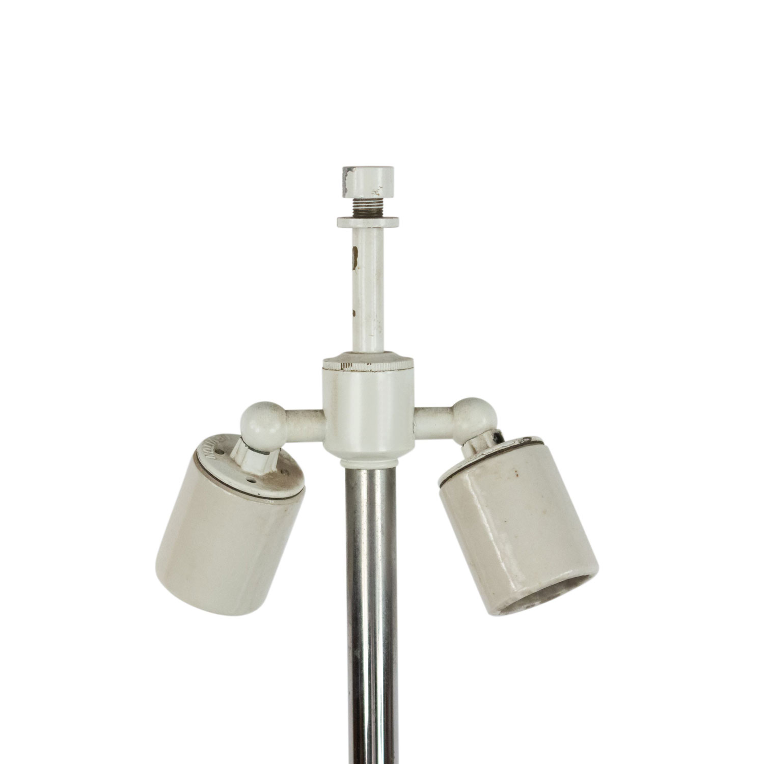 Style: Mid-Century Materials & Techniques: Chrome Category: Lighting Condition: Ships without a shade. Vintage condition.
