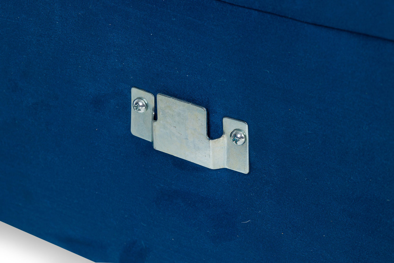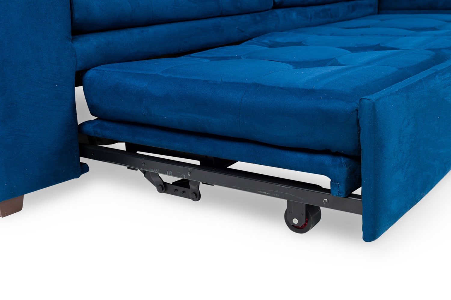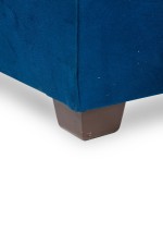 Contemporary style L-shaped sofa set in button tufted electric blue upholstery with hideaway sleeper under the 2-seat section.