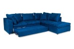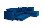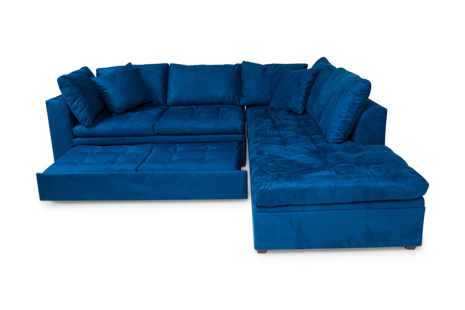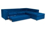 Contemporary style L-shaped sofa set in button tufted electric blue upholstery with hideaway sleeper under the 2-seat section