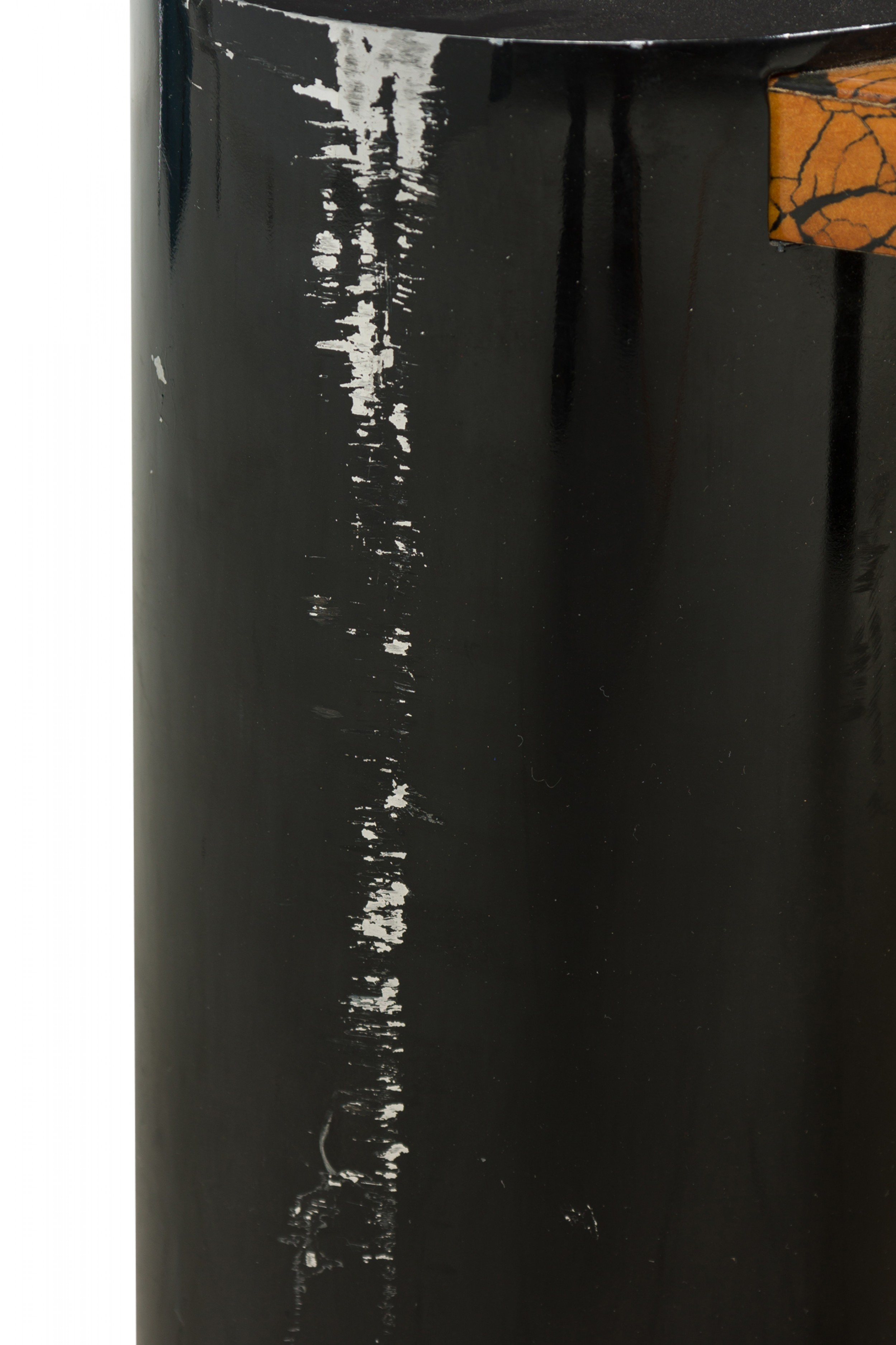 Style: Mid-Century Materials & Techniques: Ebonized, enamel, painted, wood Category: Tables Condition: Wear to finish from age & use, chip on top. Good; Wear consistent with age and use