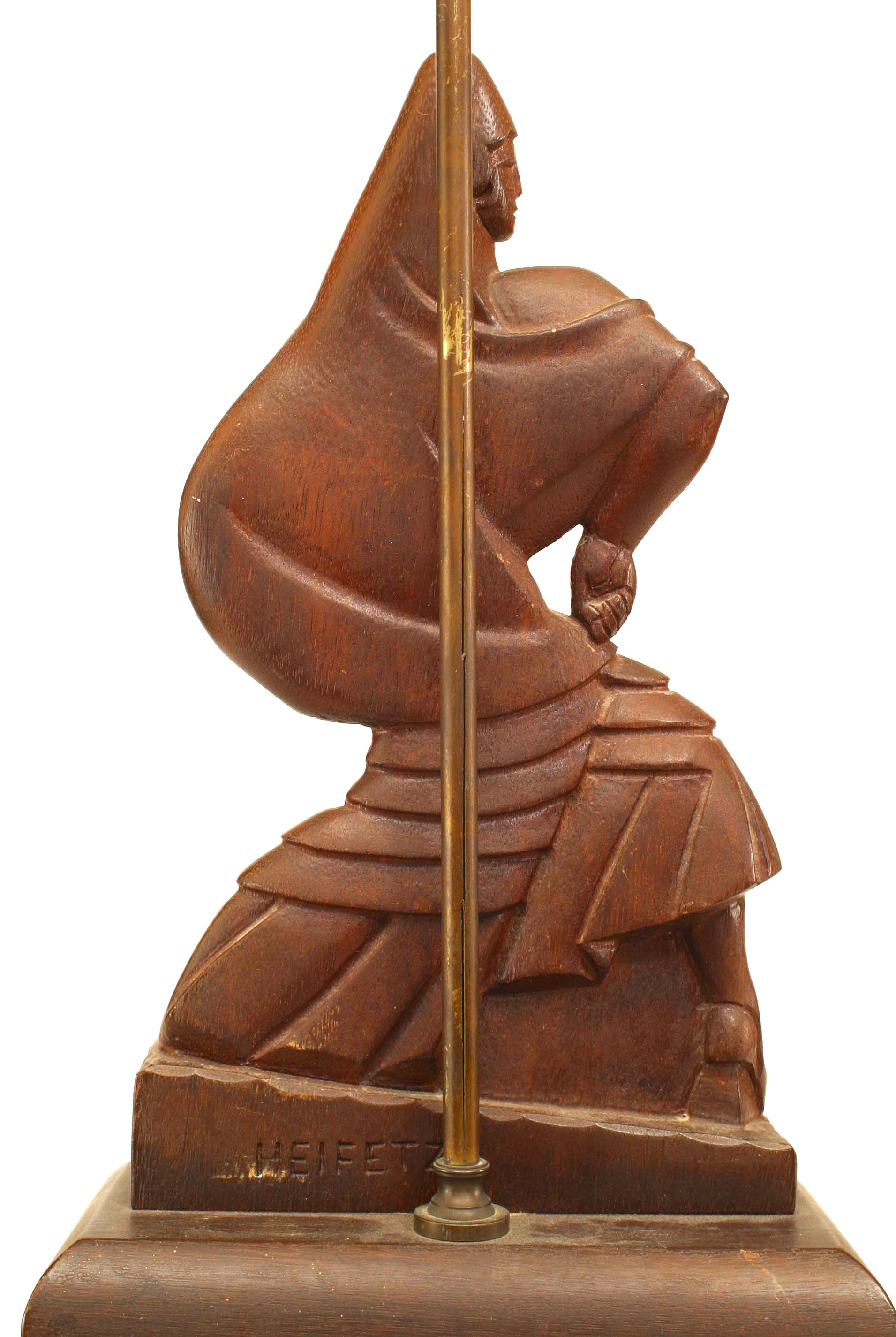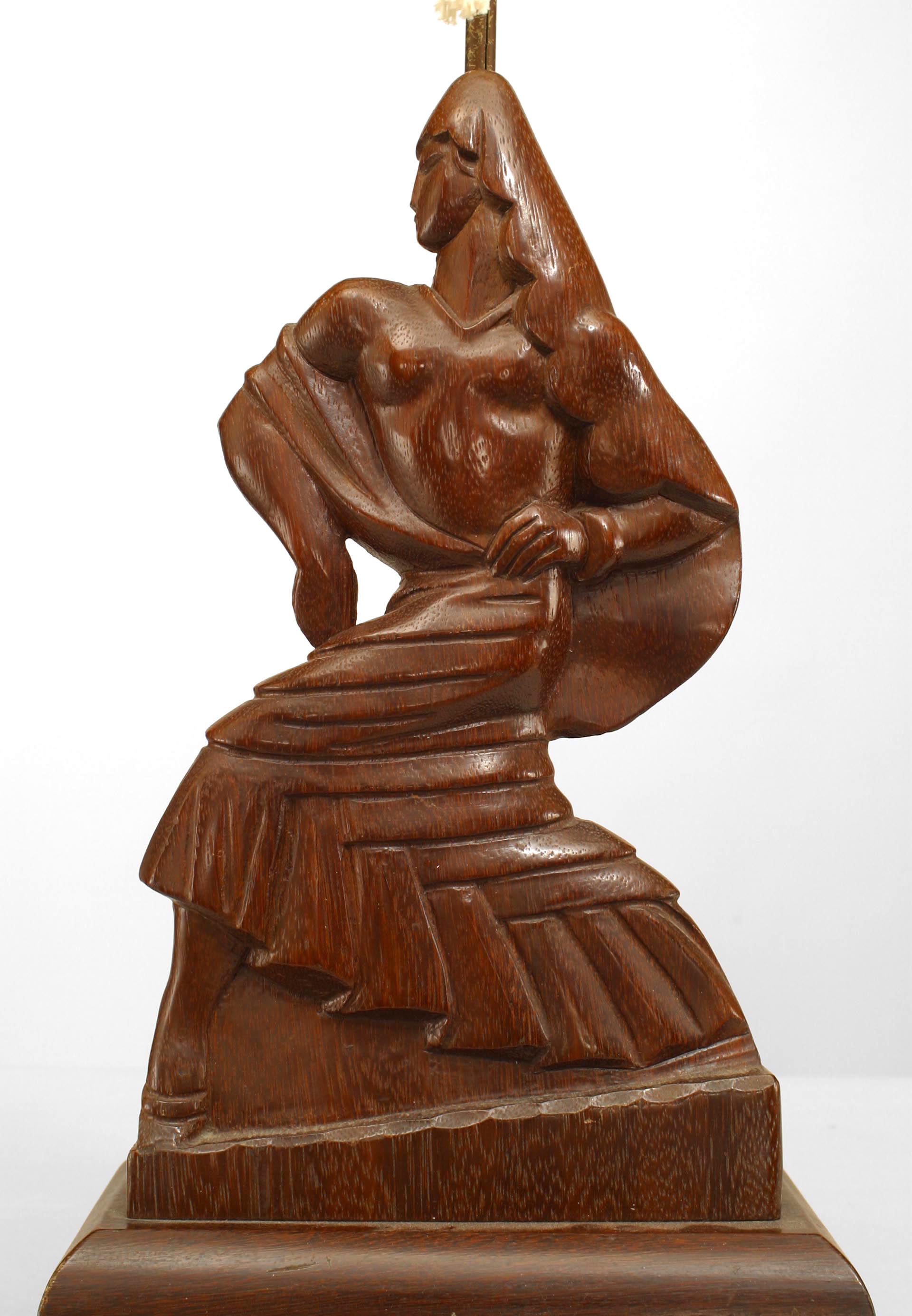 Pair of American Mid-Century Heifetz Figural Mahogany Table Lamps