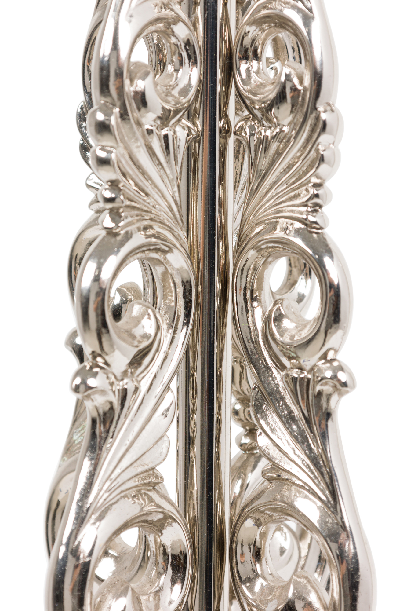 American Mid-Century tall tapered square chrome plated filigree scroll design table lamp (JAMES MONT)