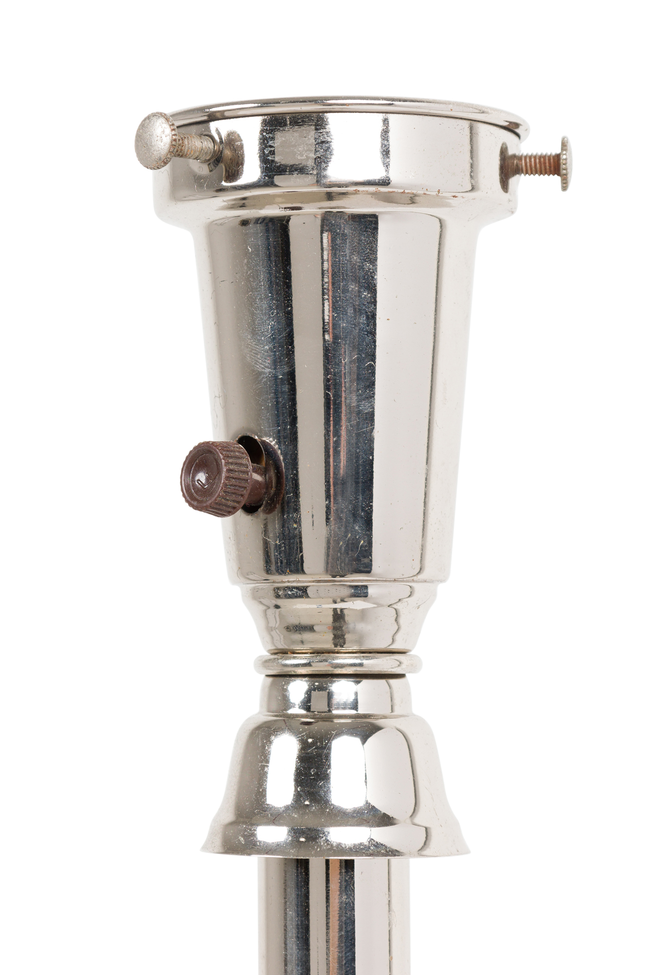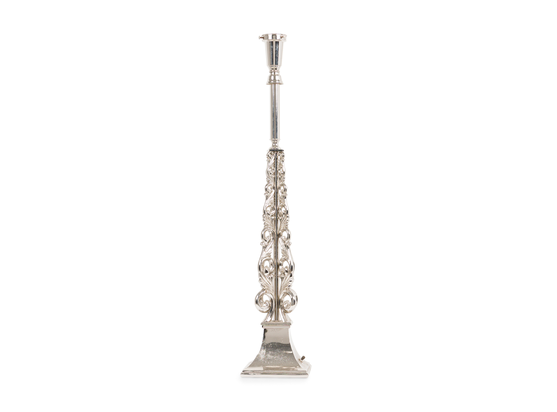American Mid-Century tall tapered square chrome plated filigree scroll design table lamp (JAMES MONT).
