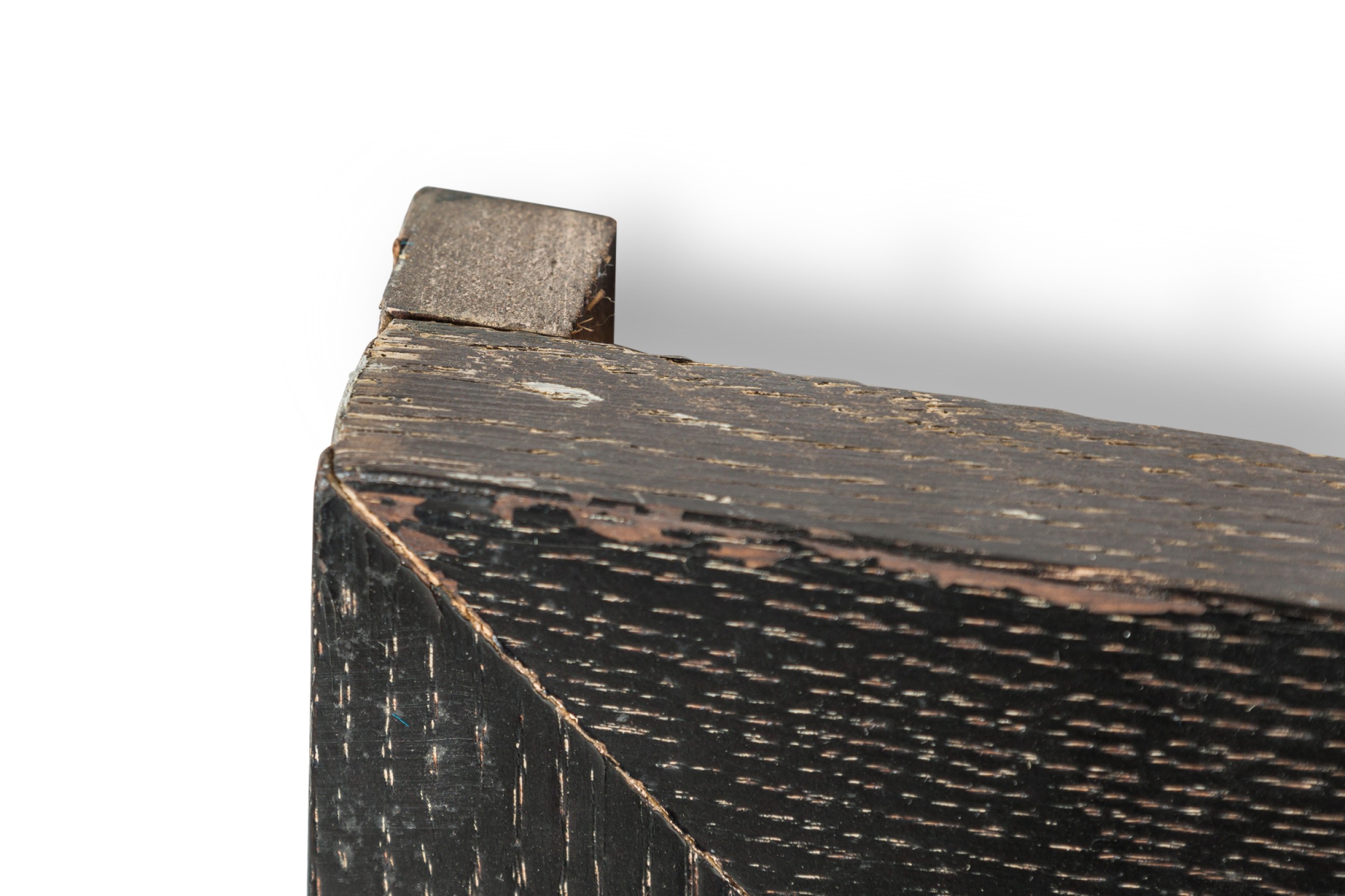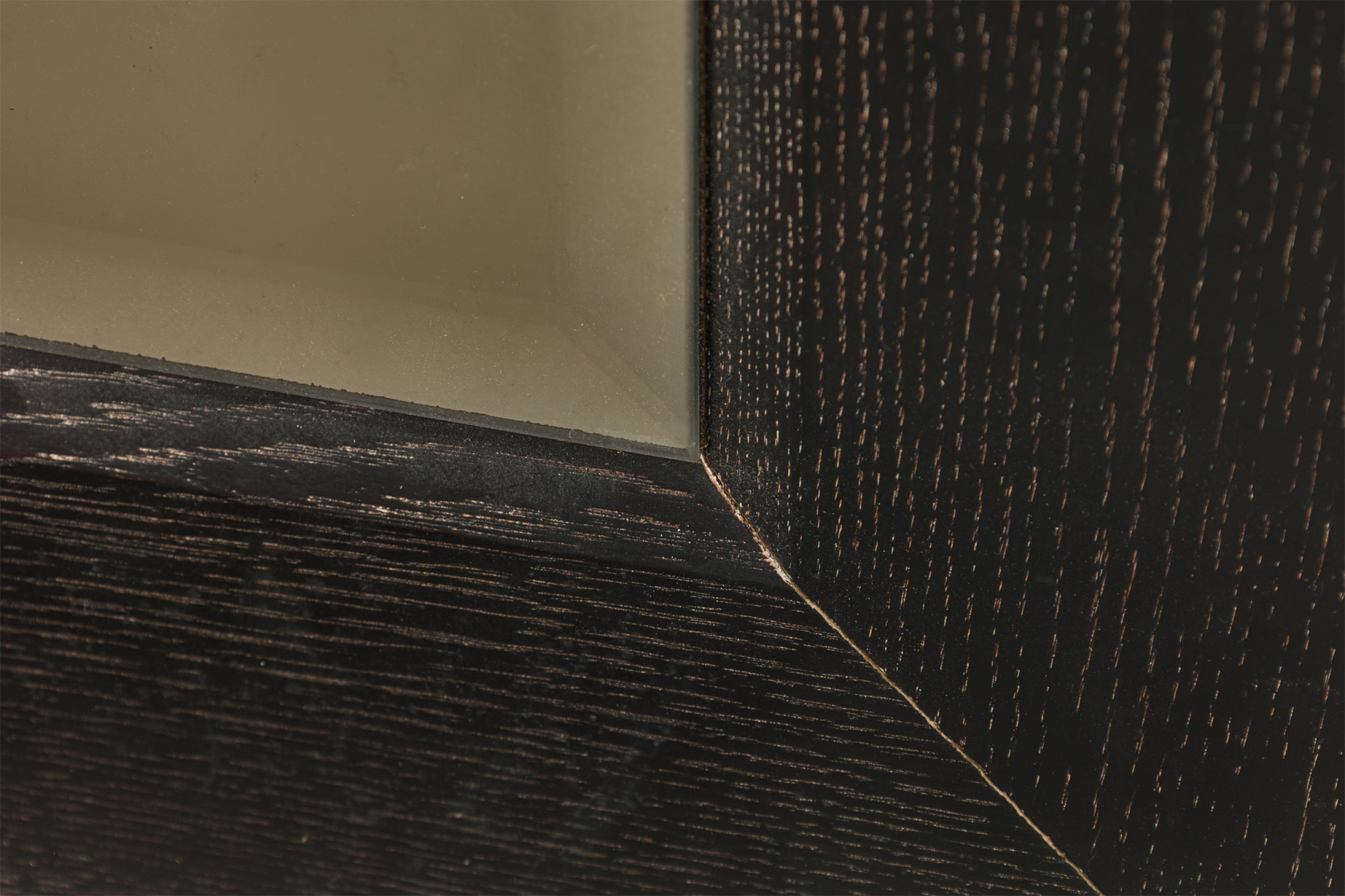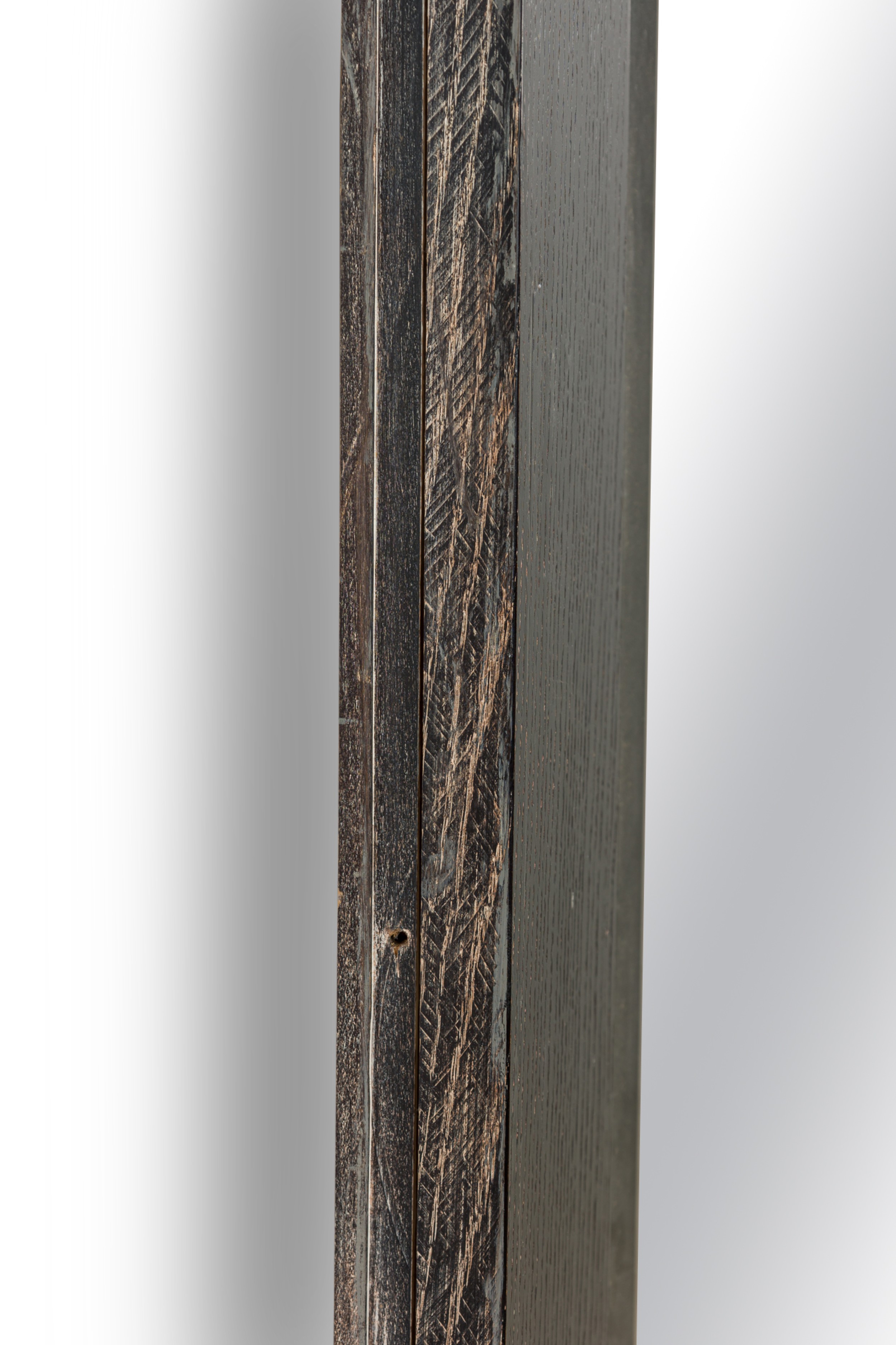 American Mid-Century wall mirror with a ebonized limed oak frame and having a beveled glass (ATT: JAMIE HERZLINGER).