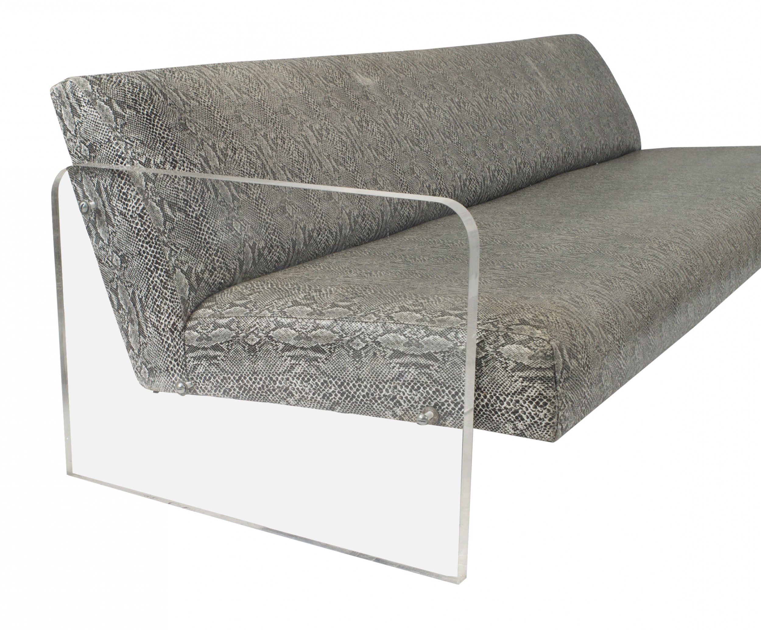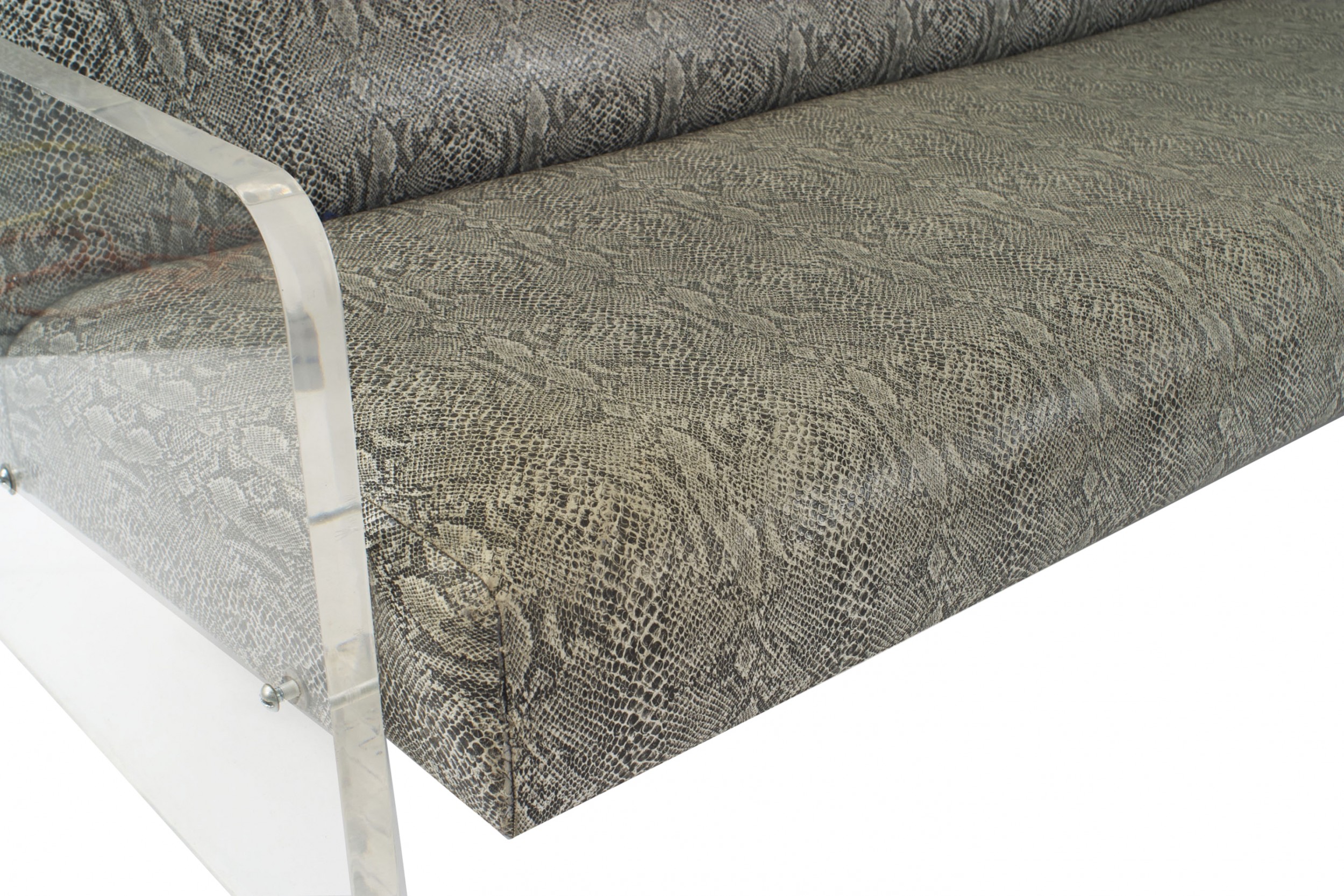 American Mid-Century (1970s) large settee with Lucite side arms and upholstered in faux python (att: VLADIMIR KAGAN)