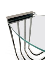 Style: Mid-Century Materials & Techniques: Chrome, glass Category: Tables
