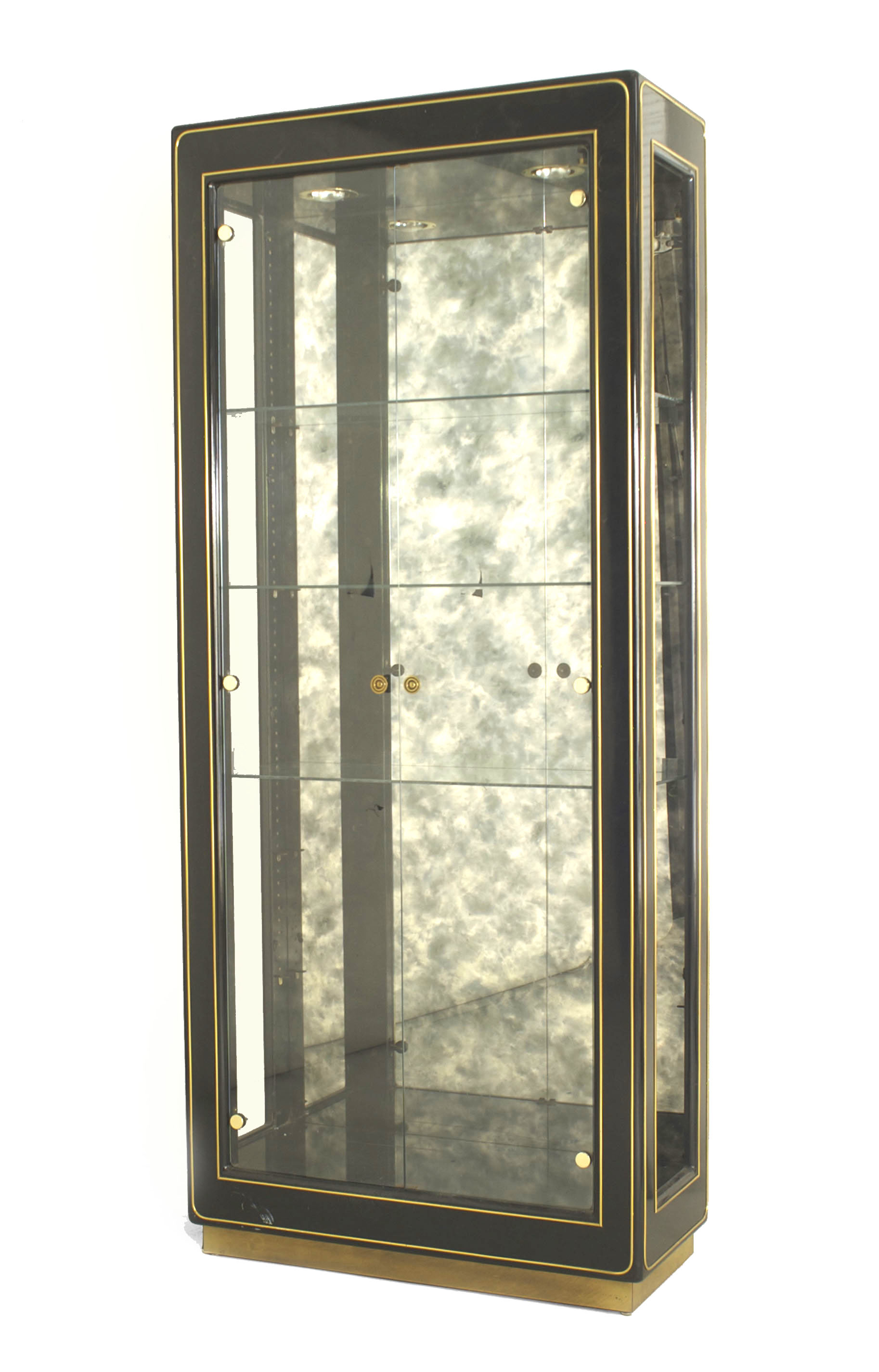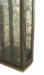 American Mid-Century Modern ebonized metal and brass trimmed vitrine cabinets (MASTERCRAFT).