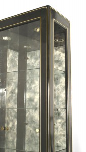 American Mid-Century Modern ebonized metal and brass trimmed vitrine cabinets (MASTERCRAFT)