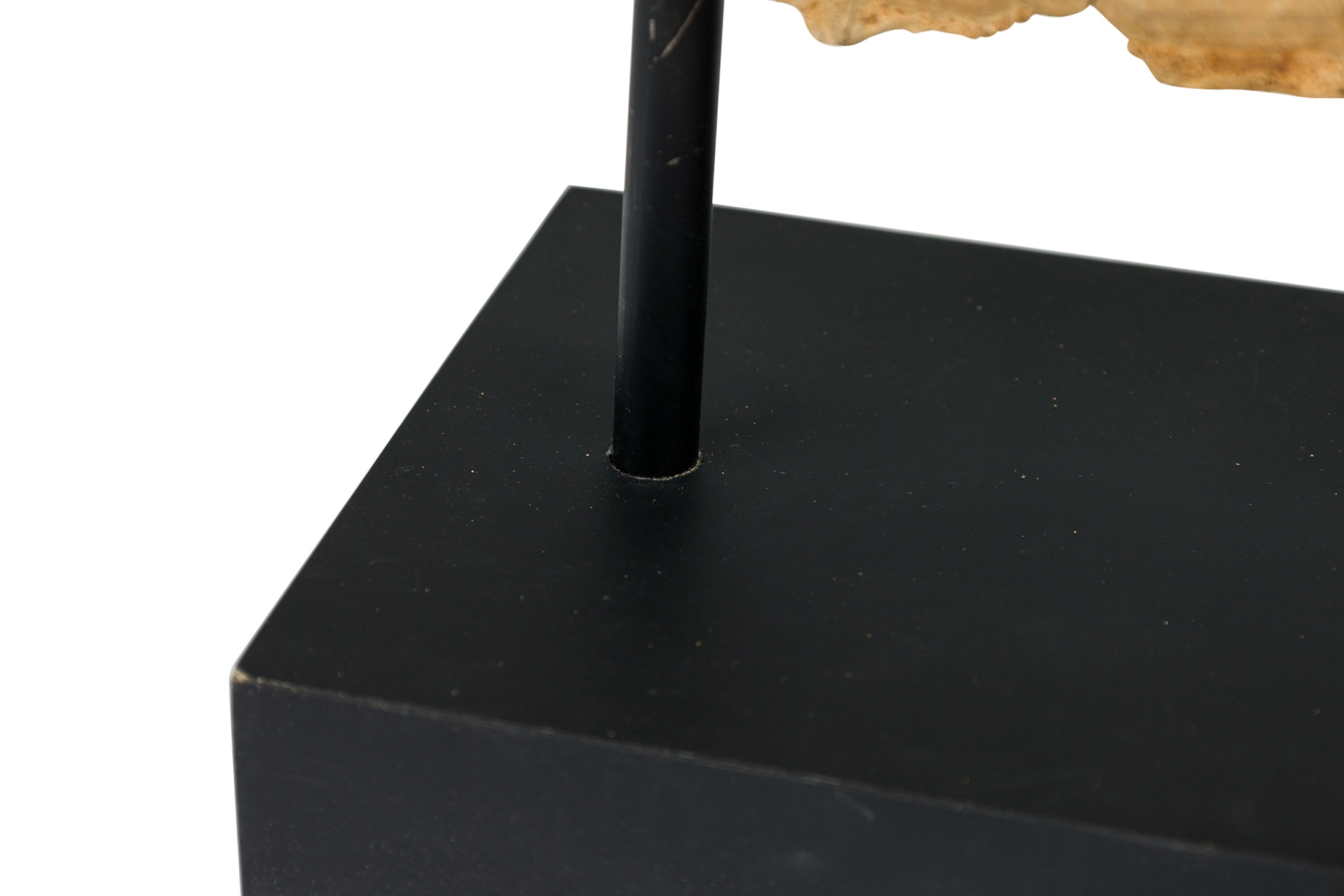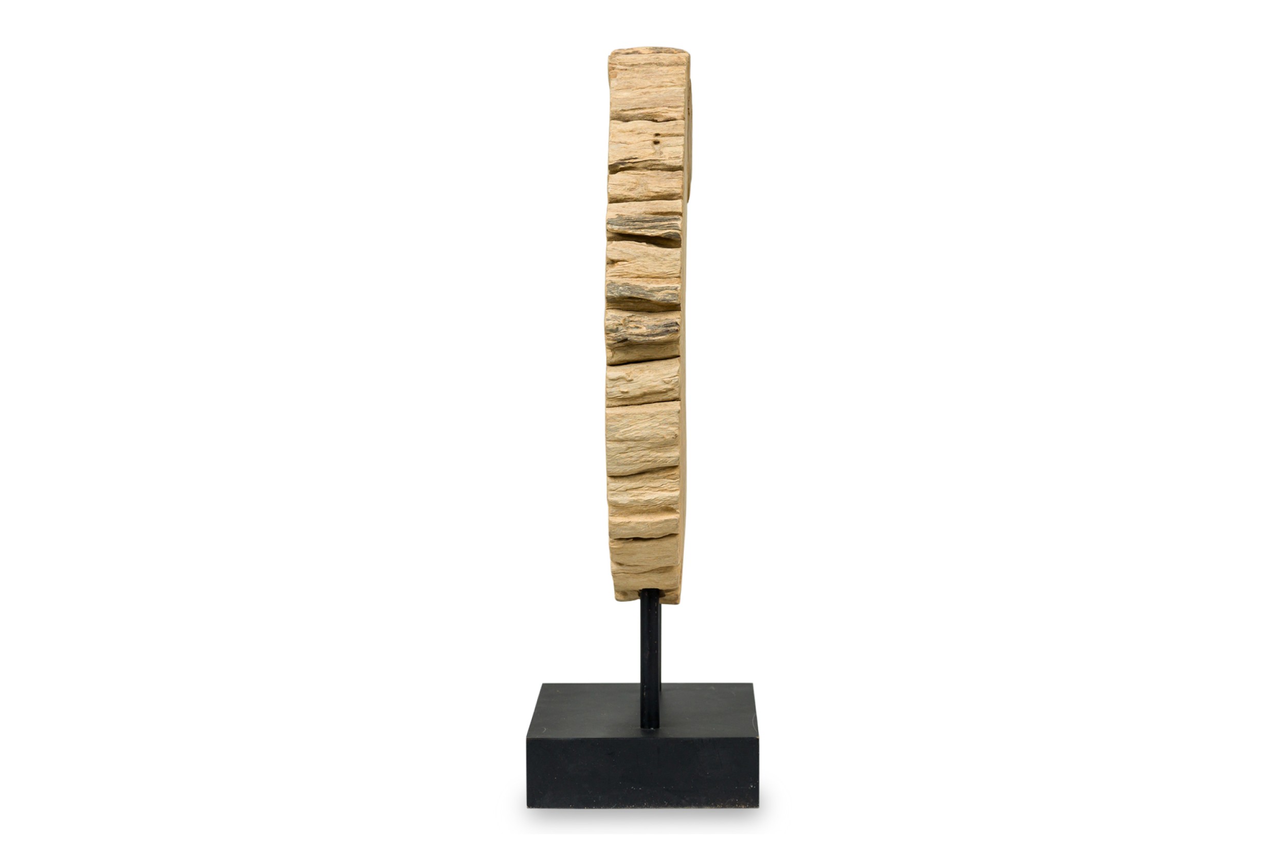 American Mid-Century Modern style petrified wood slice sculpture mounted on a black metal base