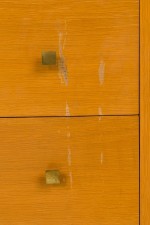Style: Mid-Century Materials & Techniques: Brass, maple, metal, wood Category: Tables, Cabinets & Case Goods, Dining Room Good; Wear consistent with age and use