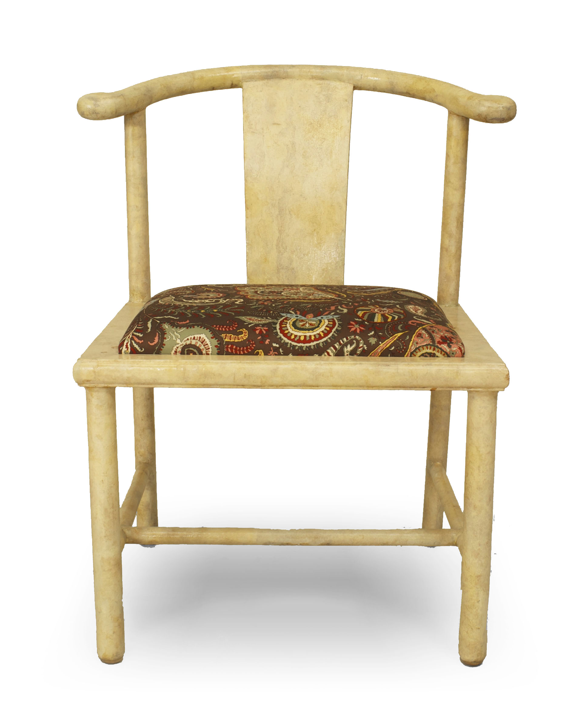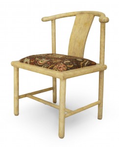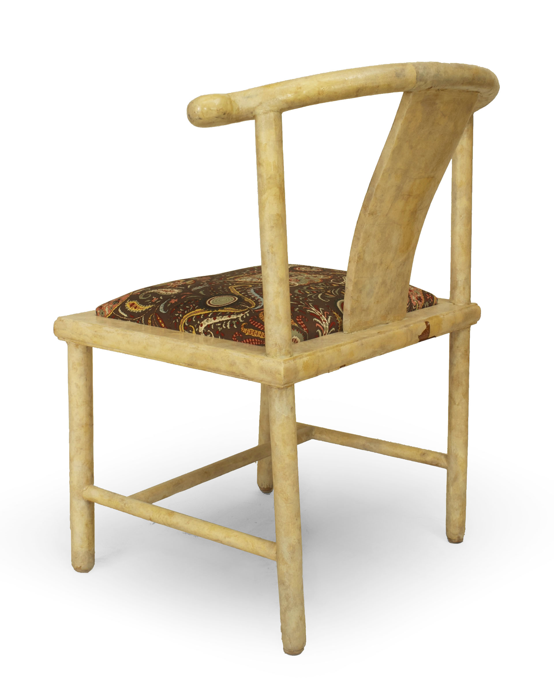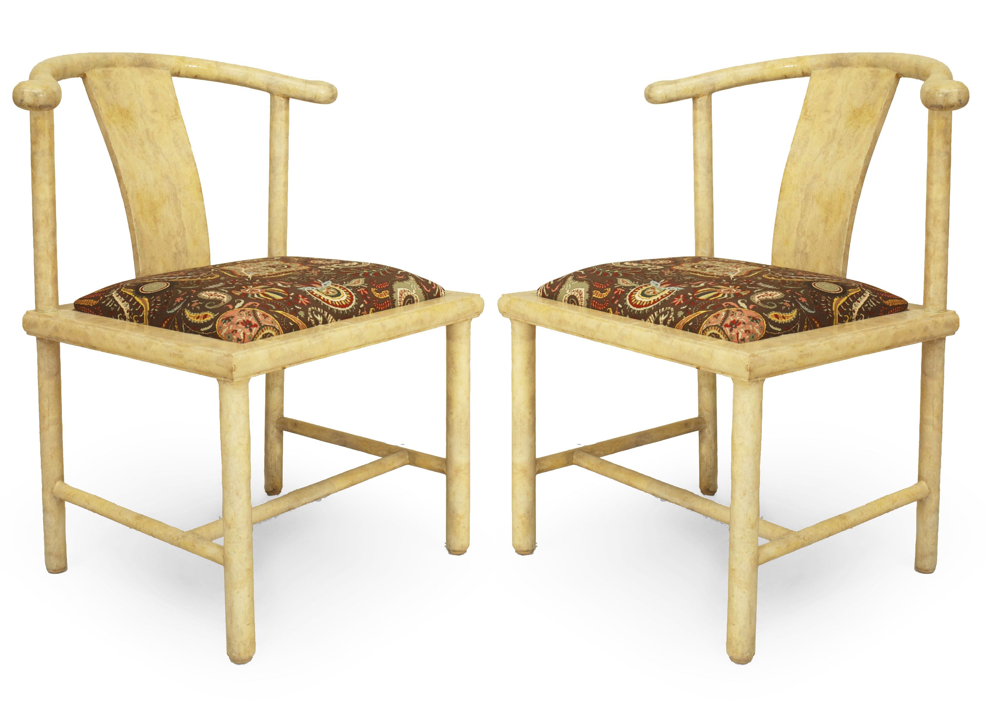 SET of 4 American Mid-century modern white parchment side chairs with "Chinese" design having a stretcher and slip seat (SAMUEL MARX).