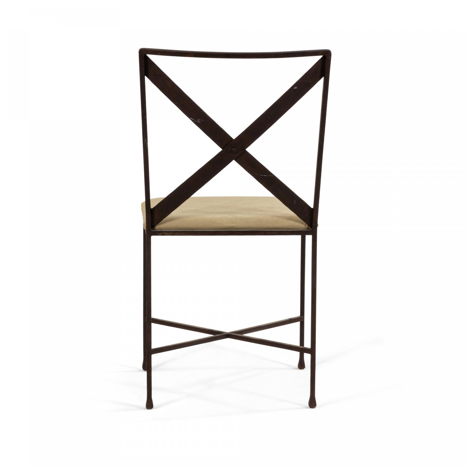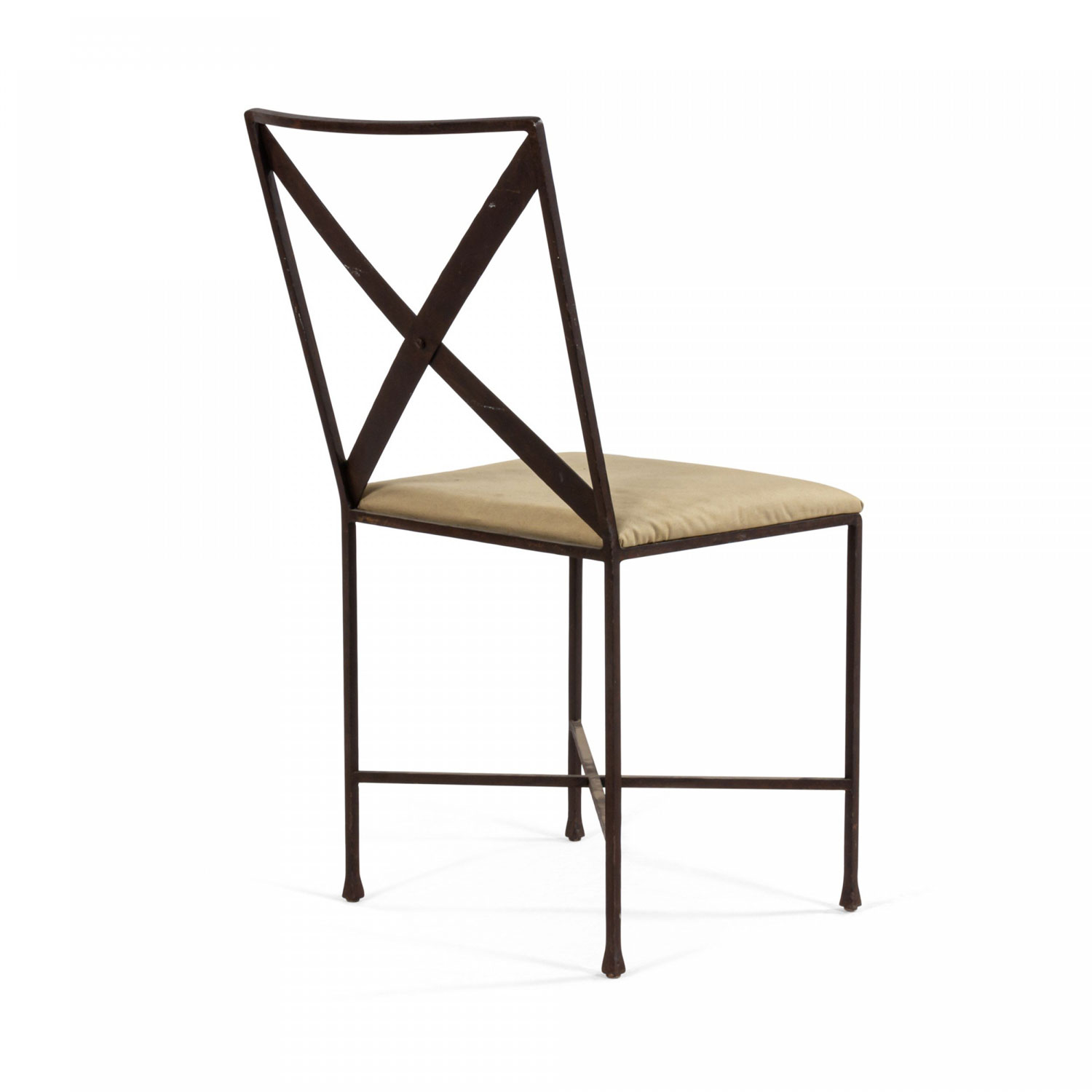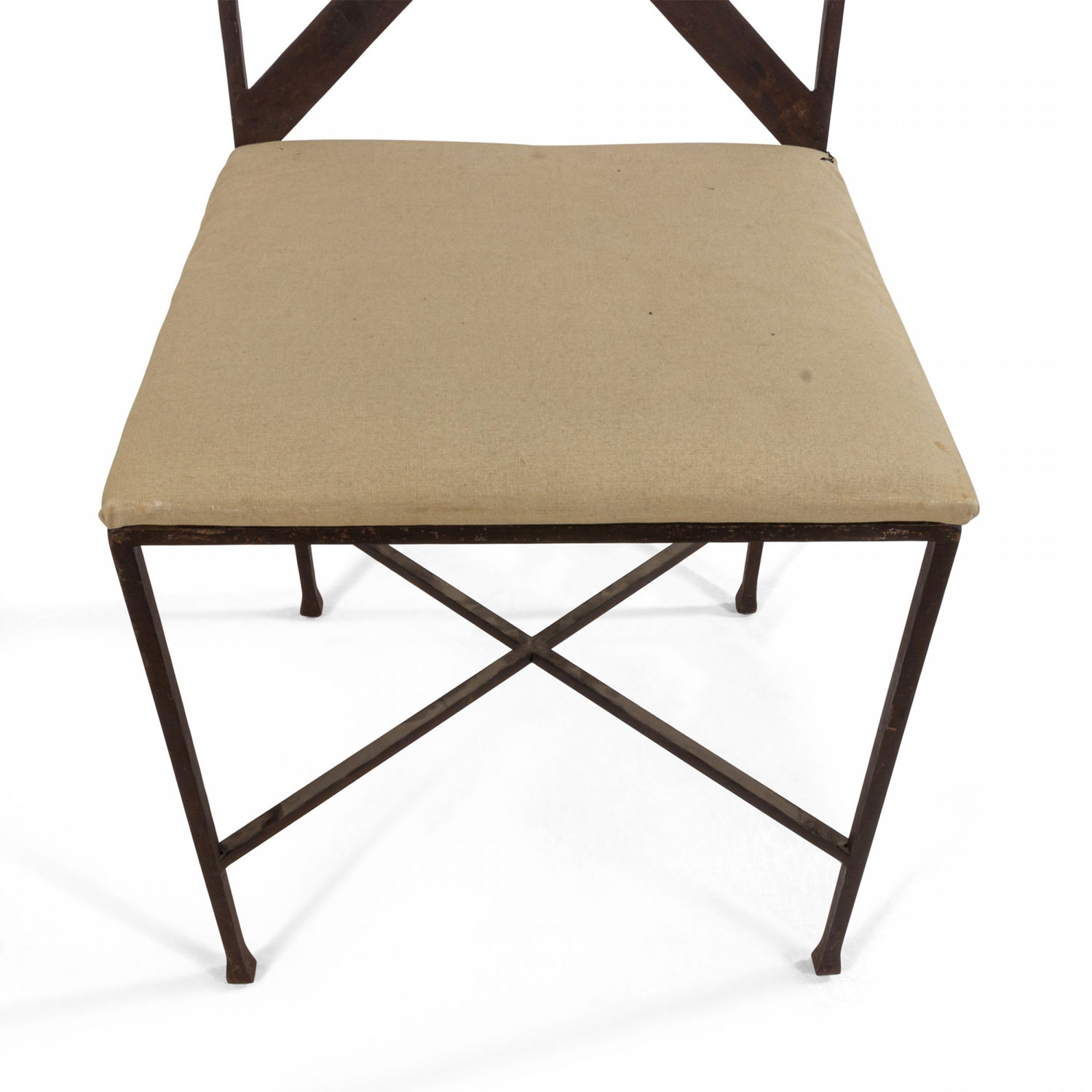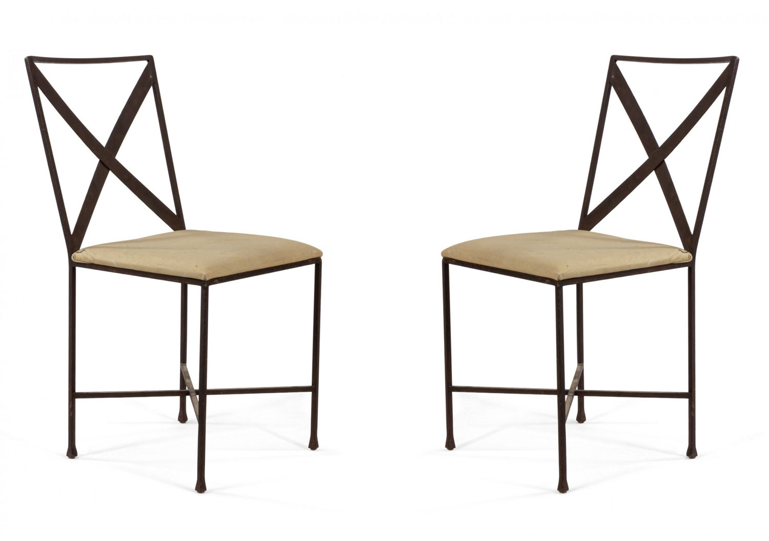 SET of 4 American Mid-Century steel frame side chairs with an "X" design back and a seat cushion (by CLAYBURN).