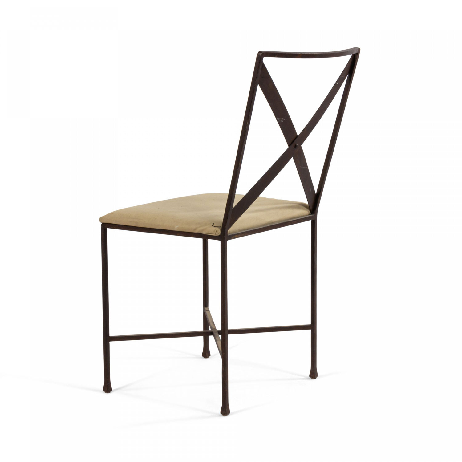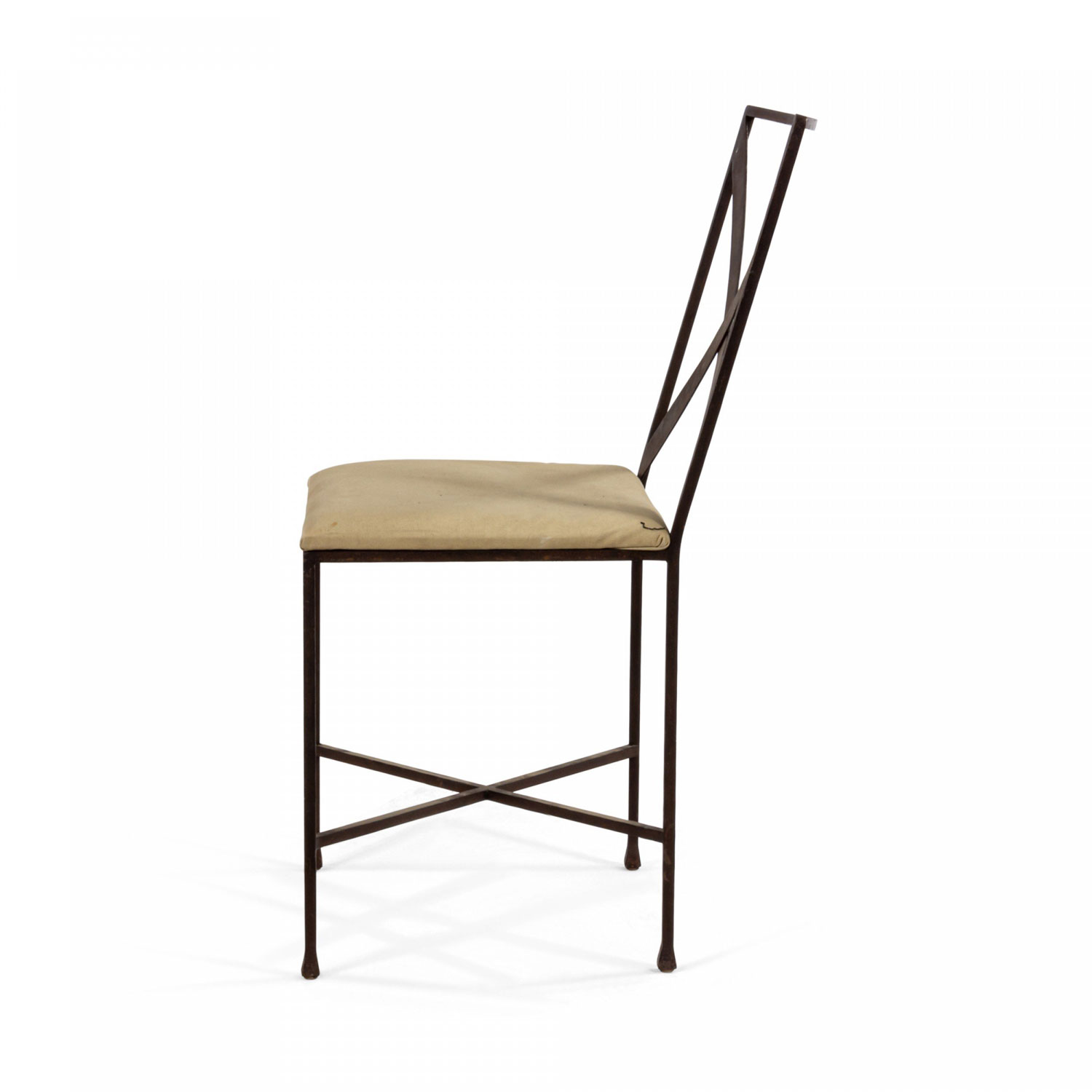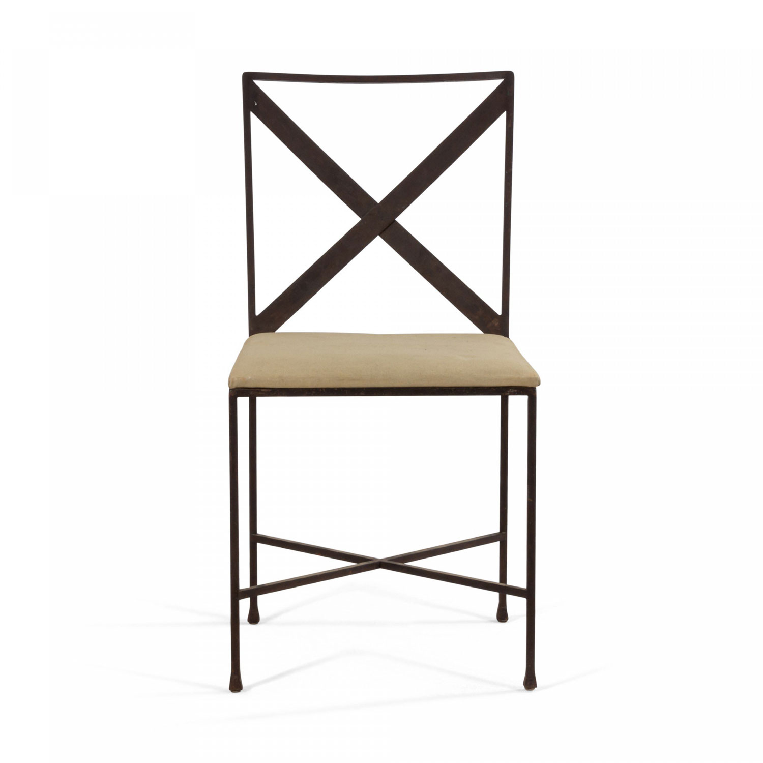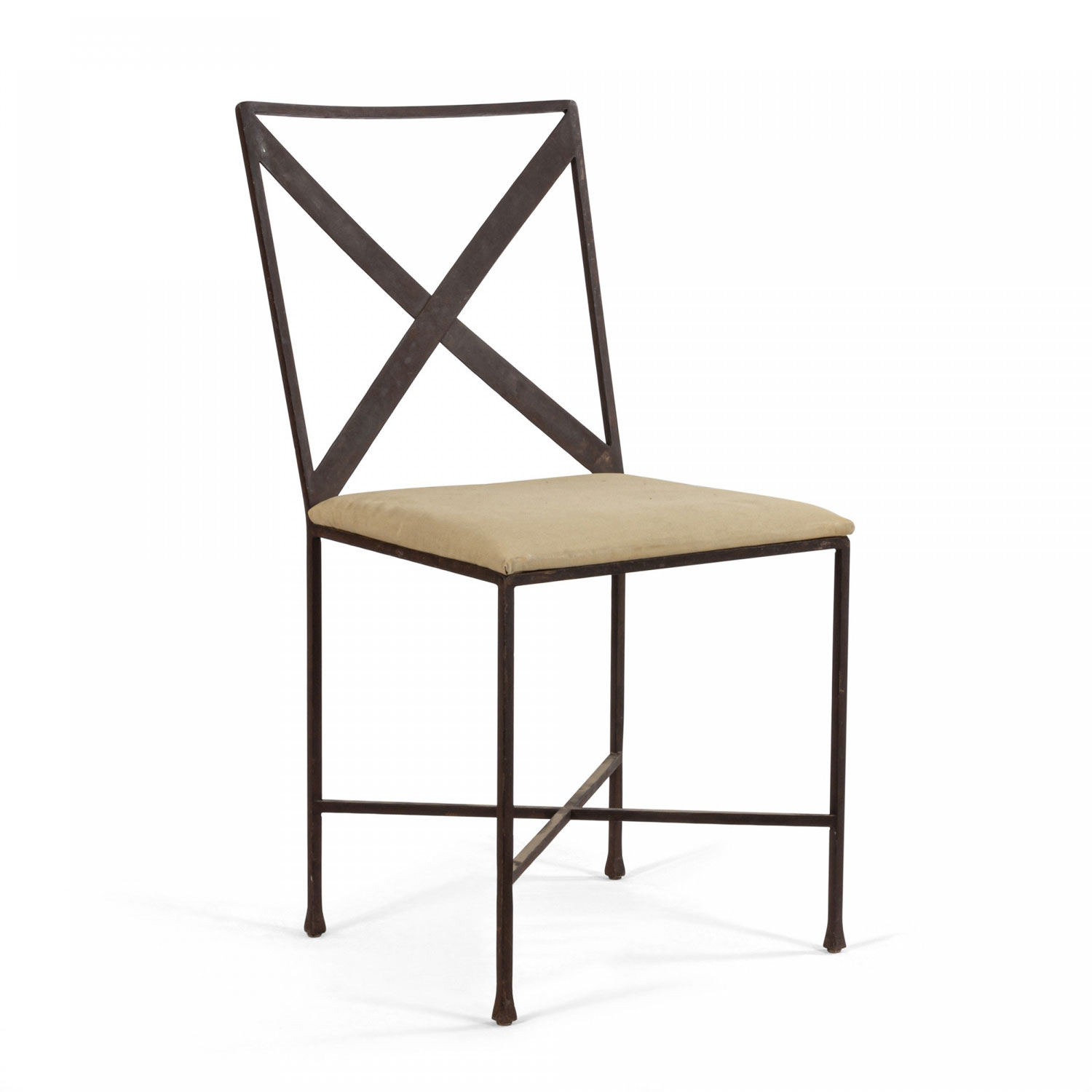 SET of 4 American Mid-Century steel frame side chairs with an "X" design back and a seat cushion (by CLAYBURN).