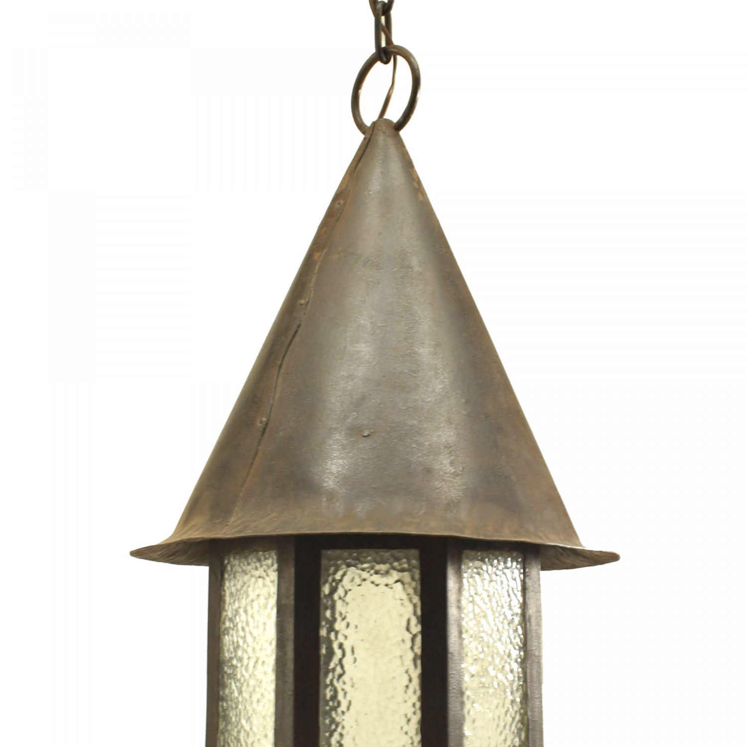 2 American Mission black painted iron 8 sided lanterns with cone shaped top (PRICED EACH).