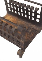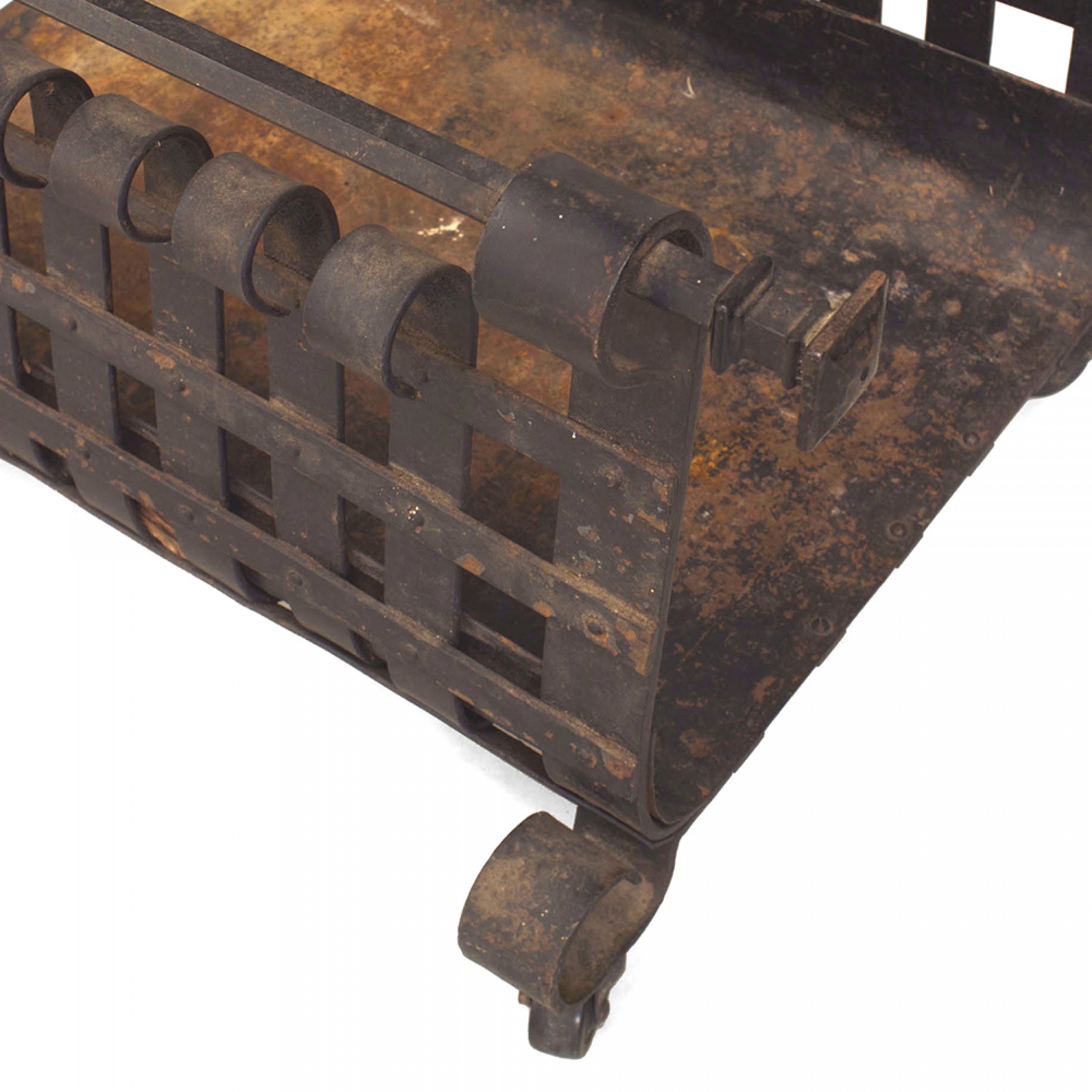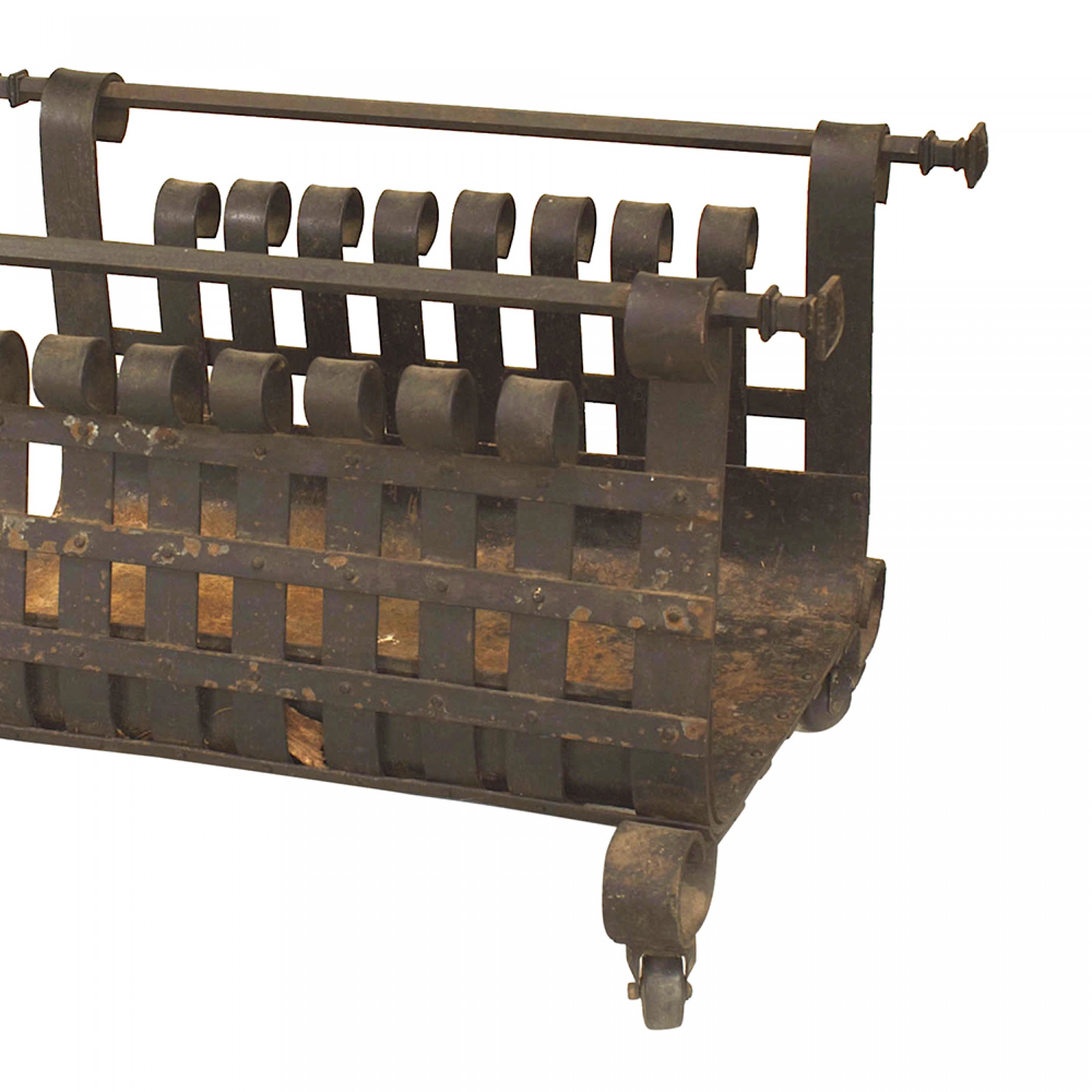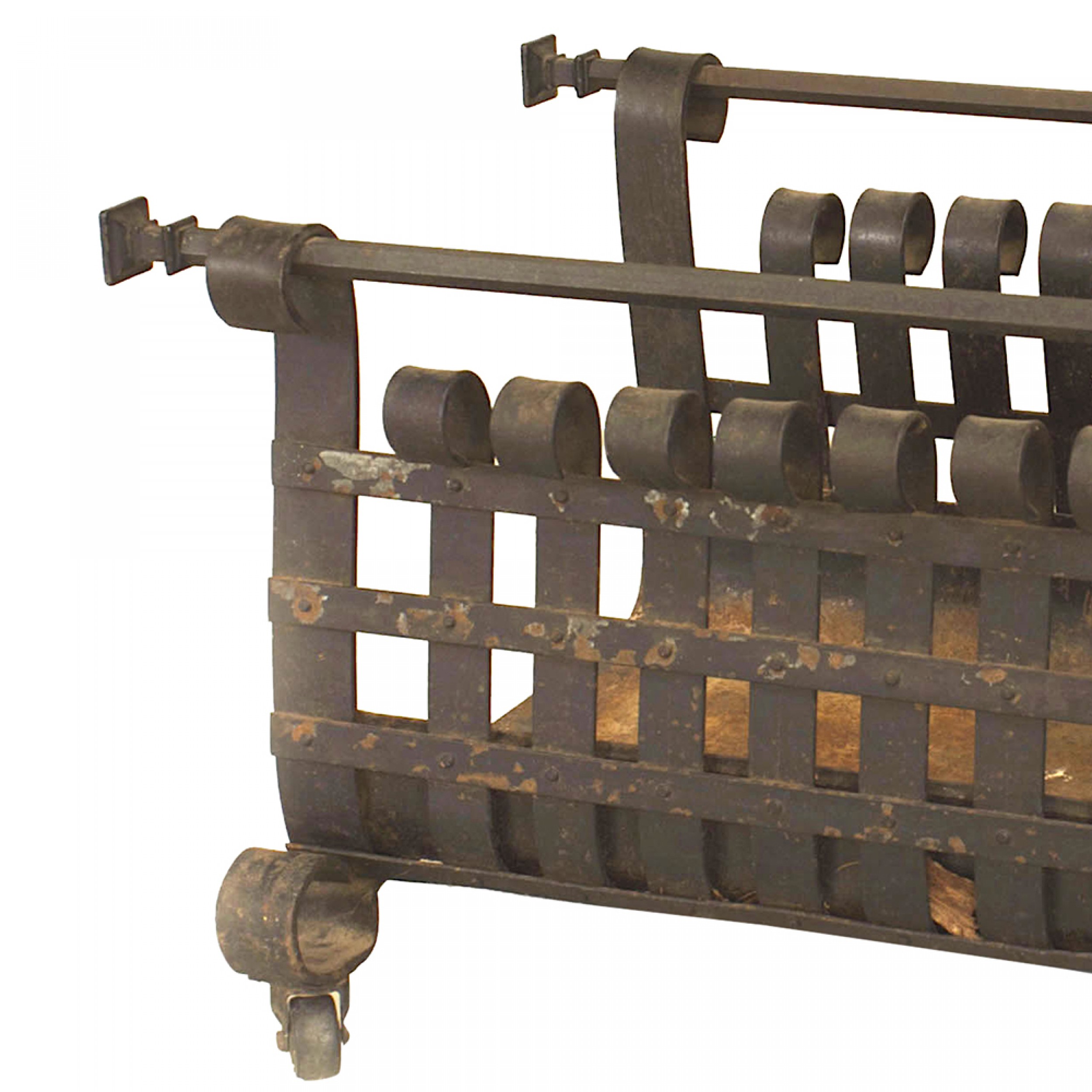 American Mission-style (19/20th Century) wrought iron log holder magazine rack with a scroll design sides..