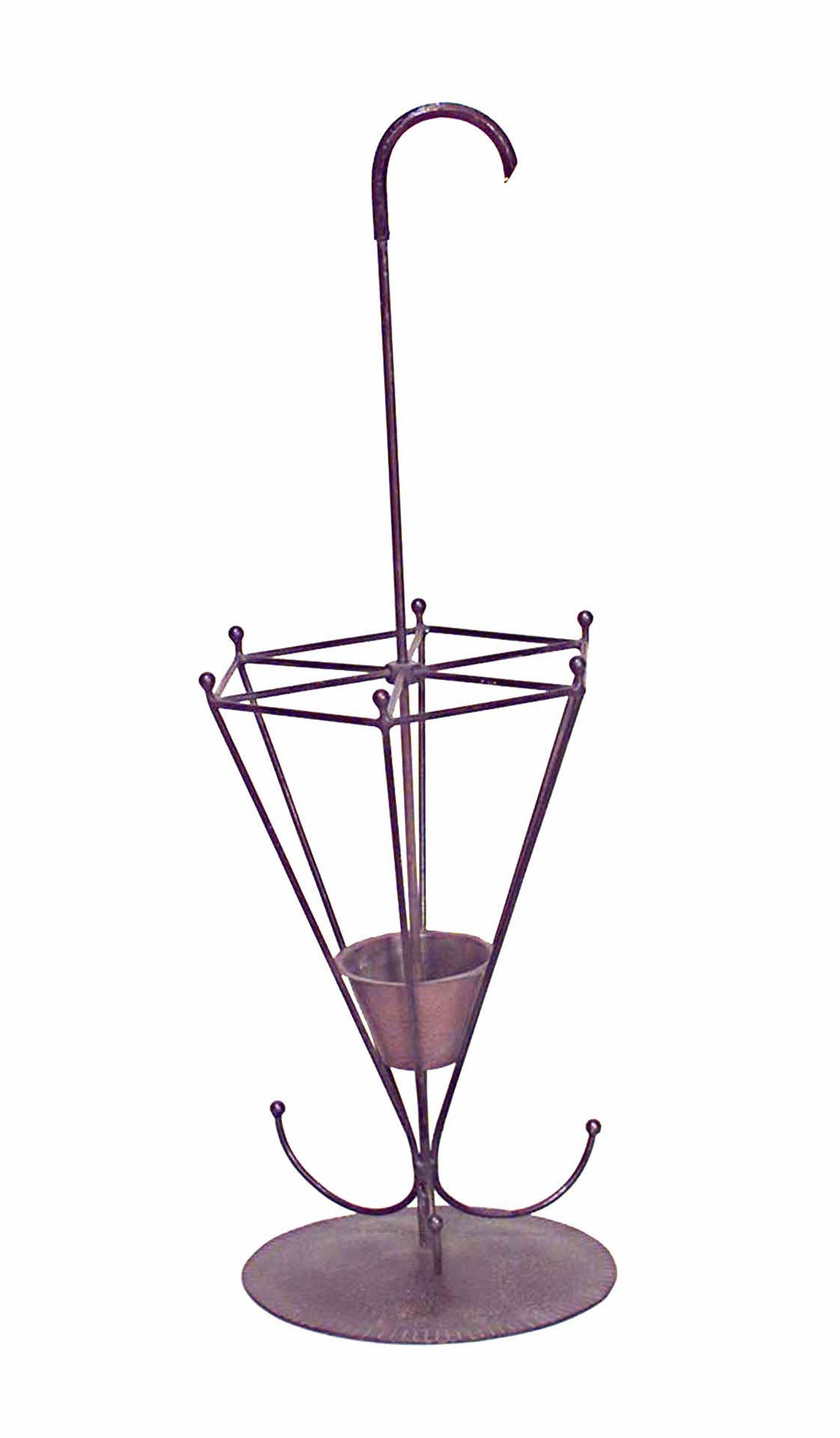 American Mission wrought iron umbrella shaped umbrella stand with round hammered base..