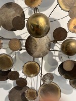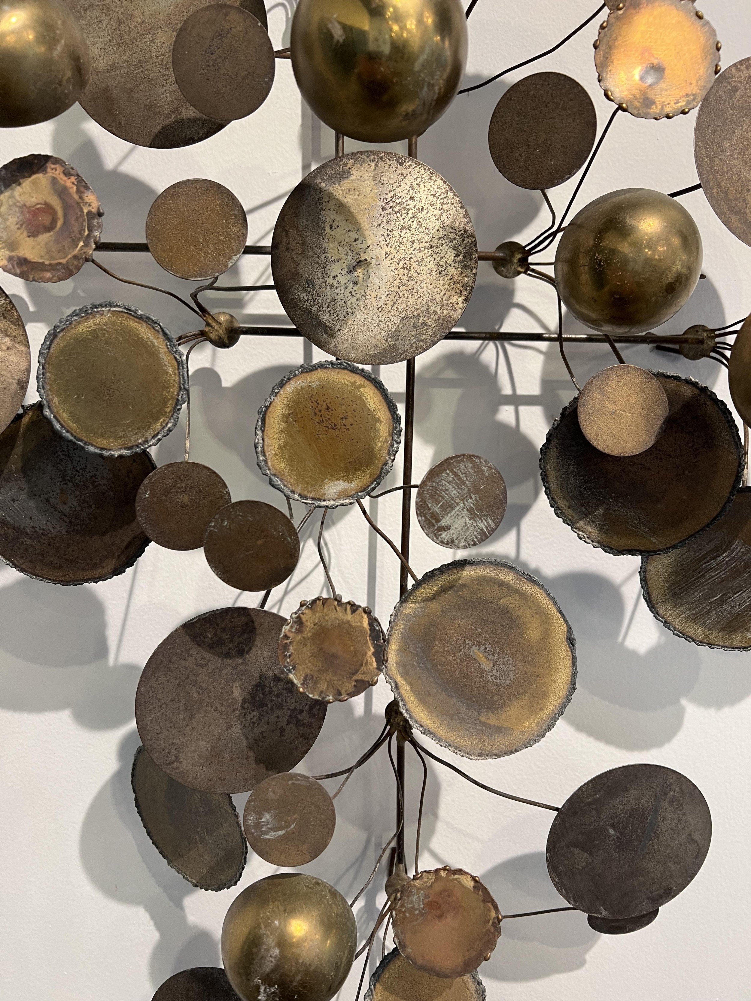 American Mid-Century Modern mixed metal of oxidized silver, brass, and copper Wall Sculpture "Raindrops", (by CURTIS JERE).