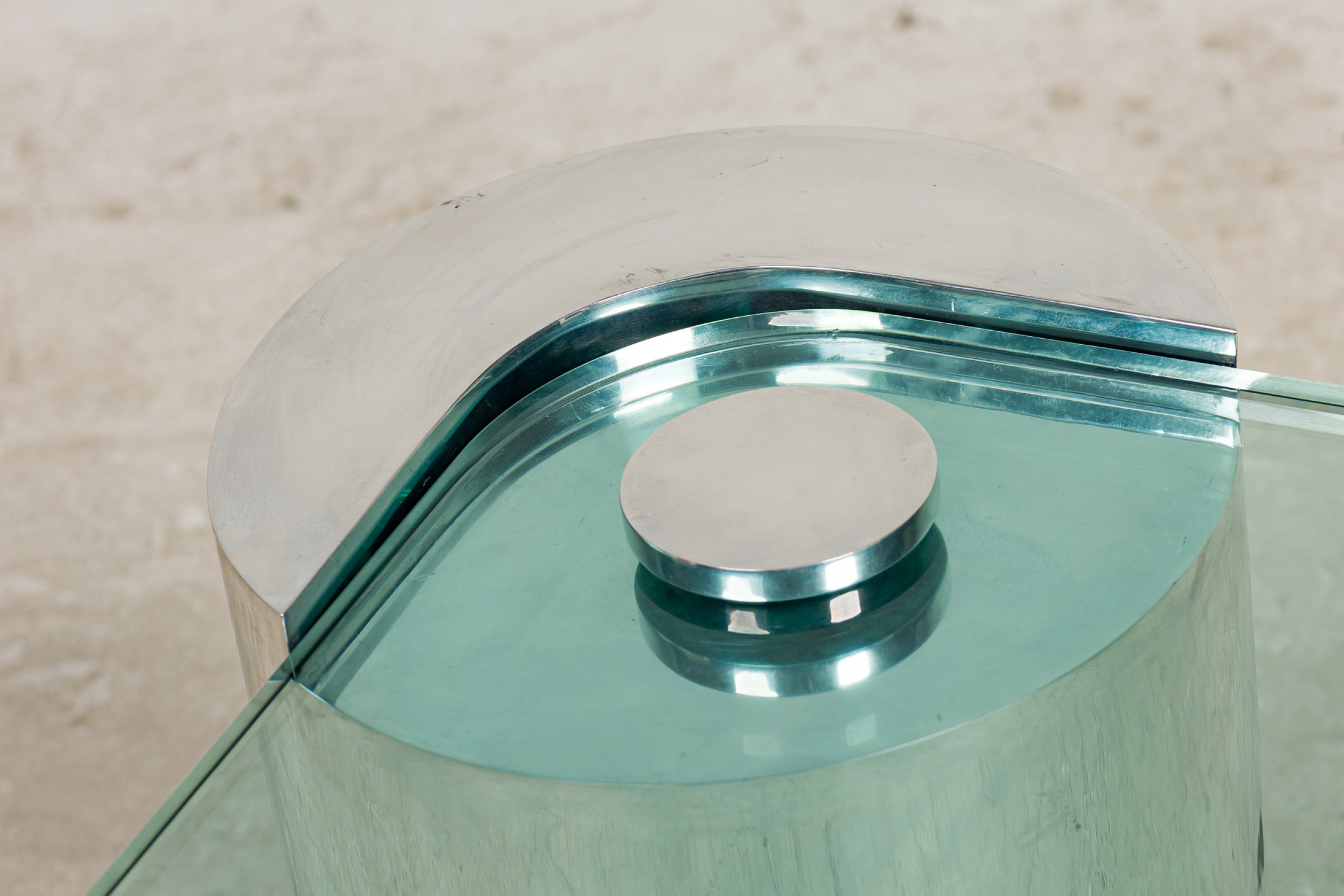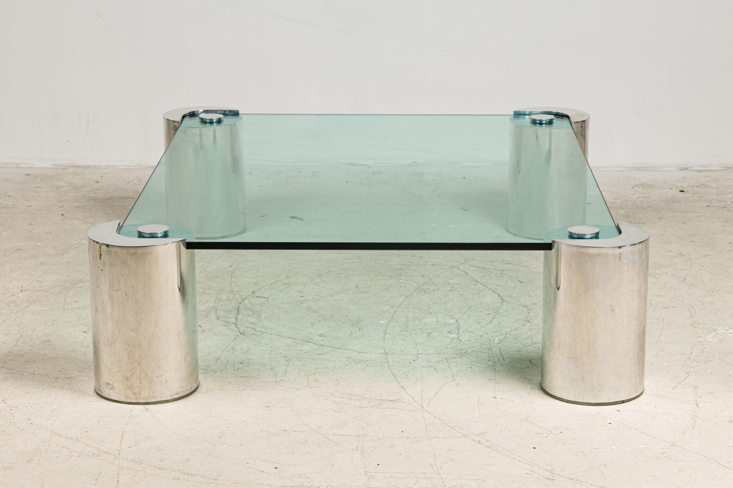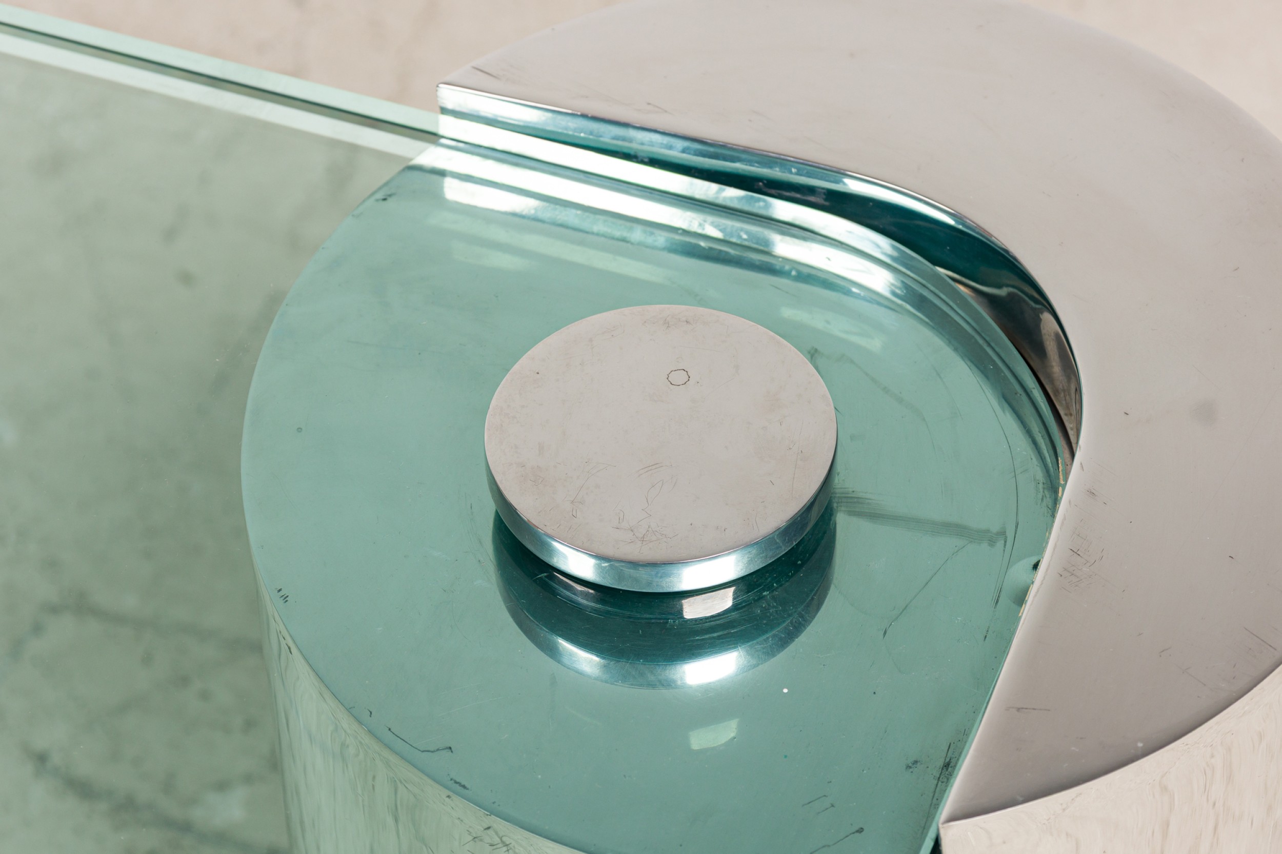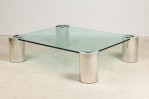 Style: Mid-Century Materials & Techniques: Chrome, glass, metal Category: Tables