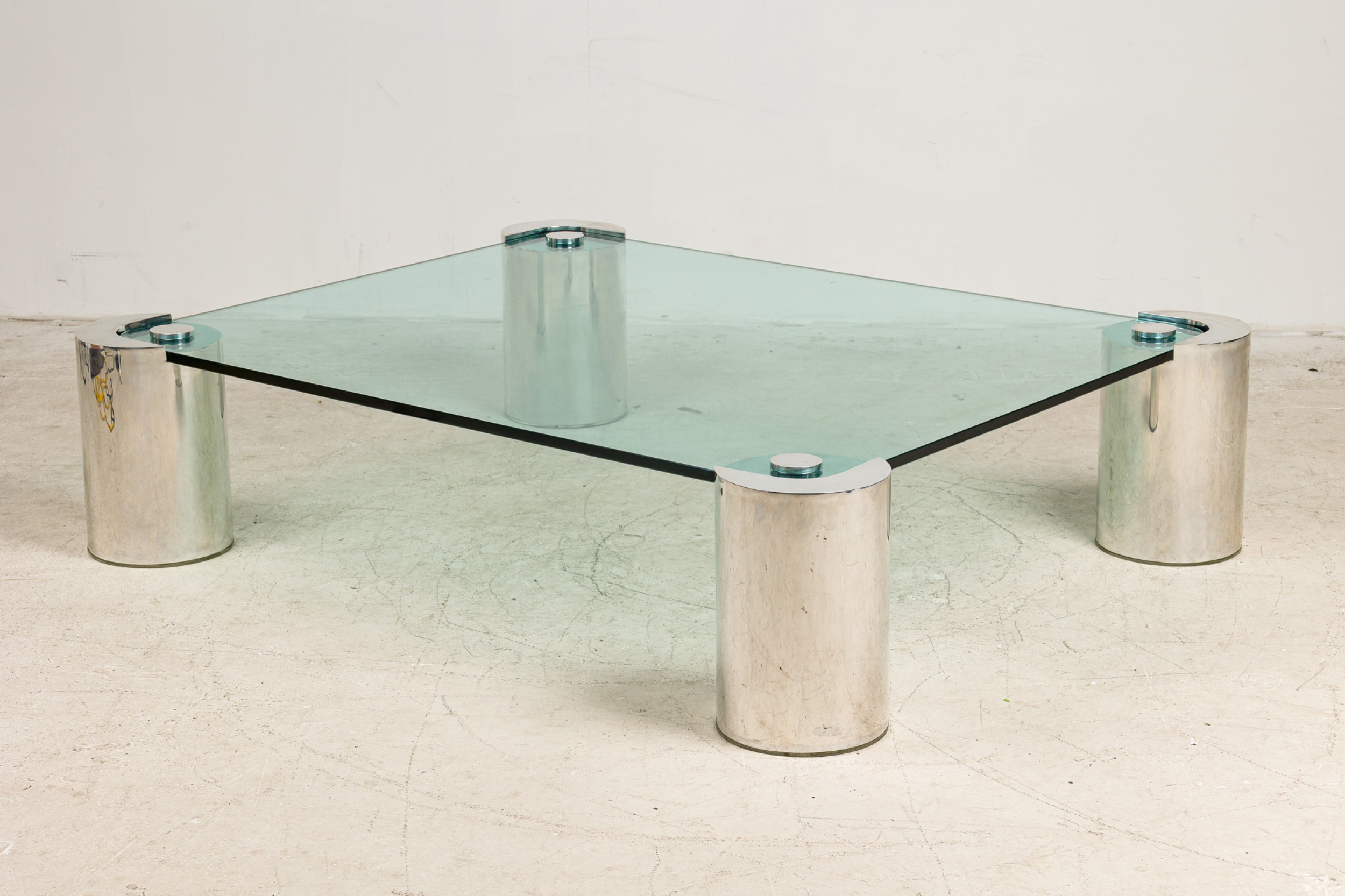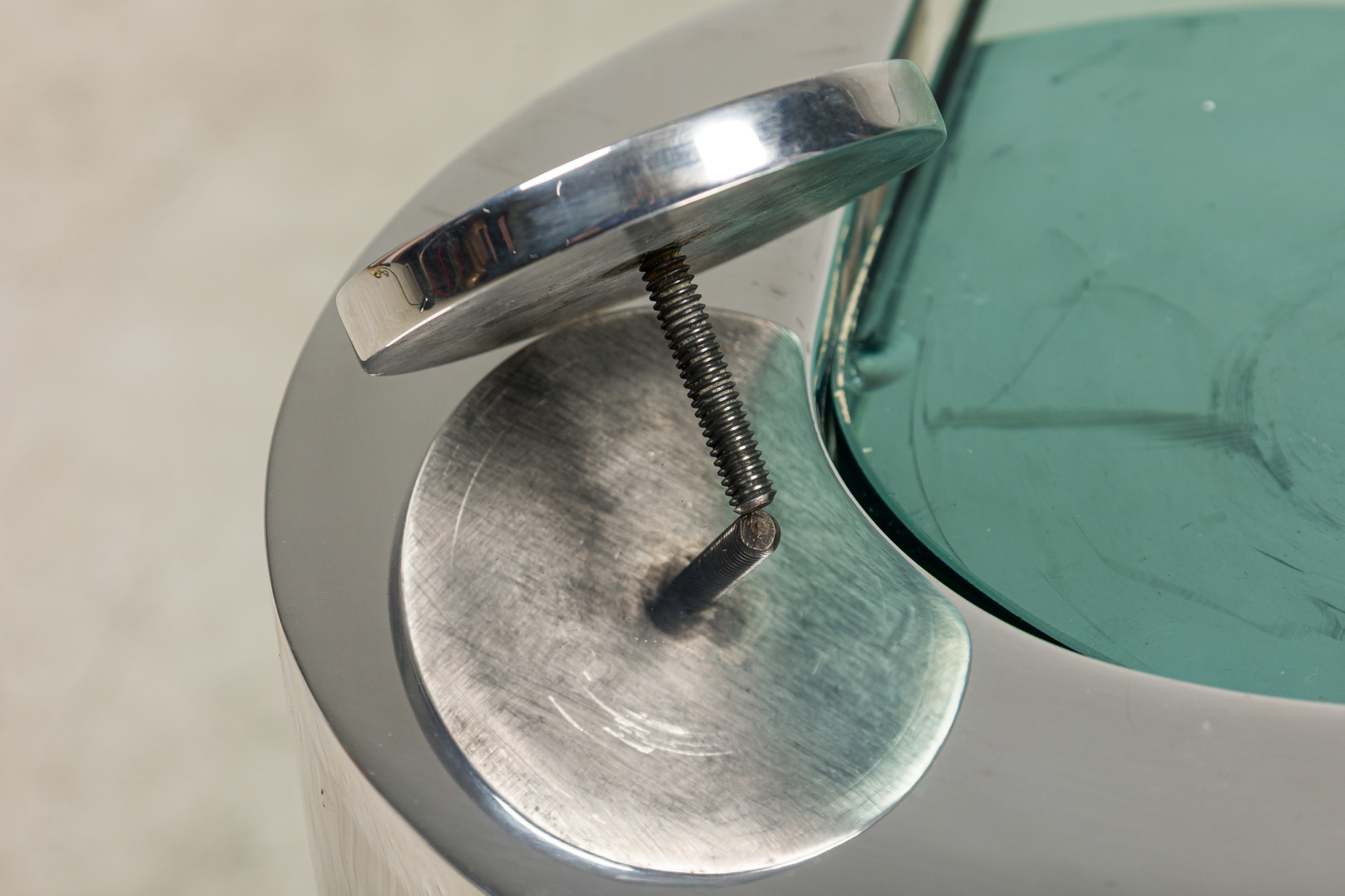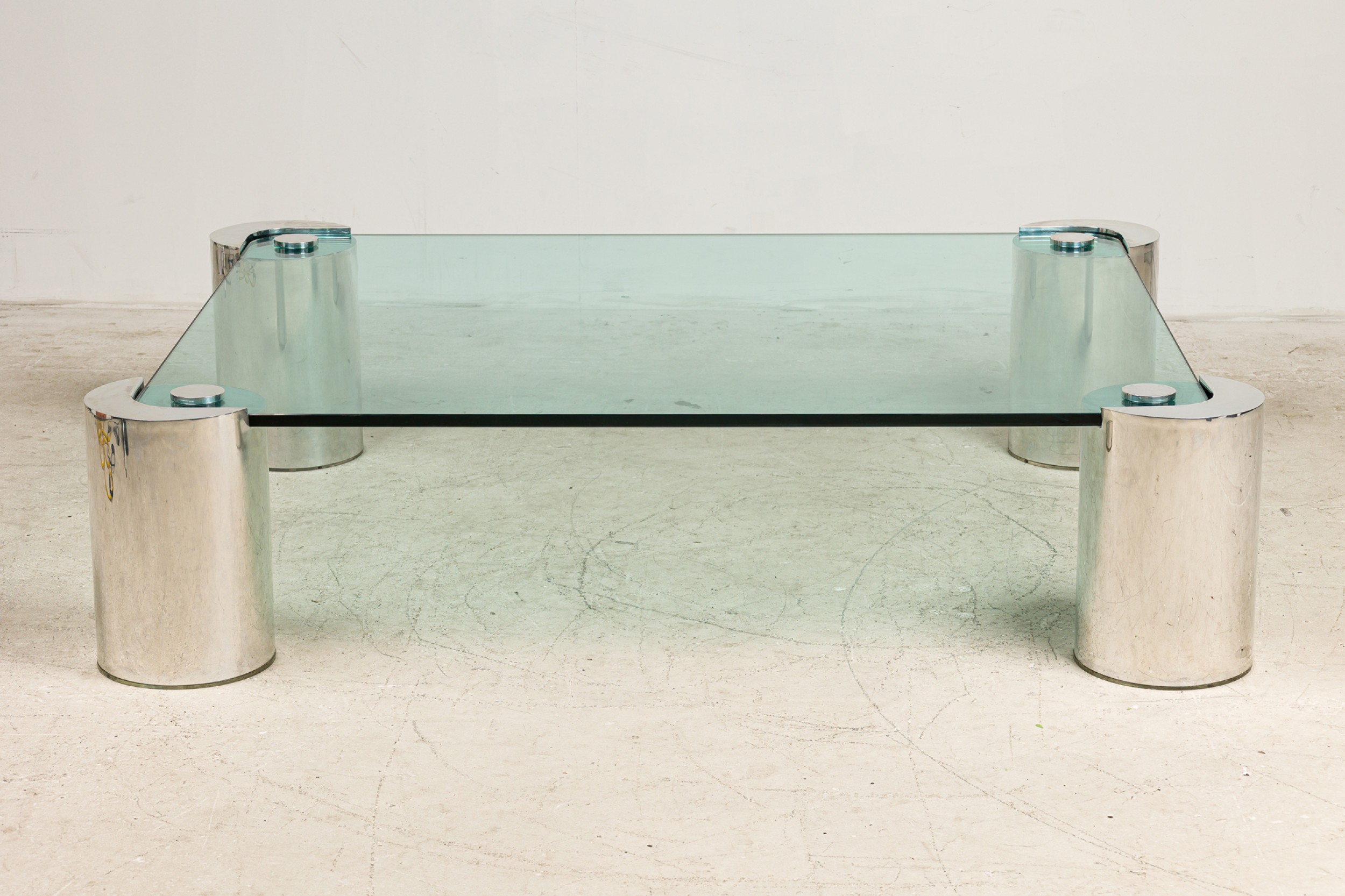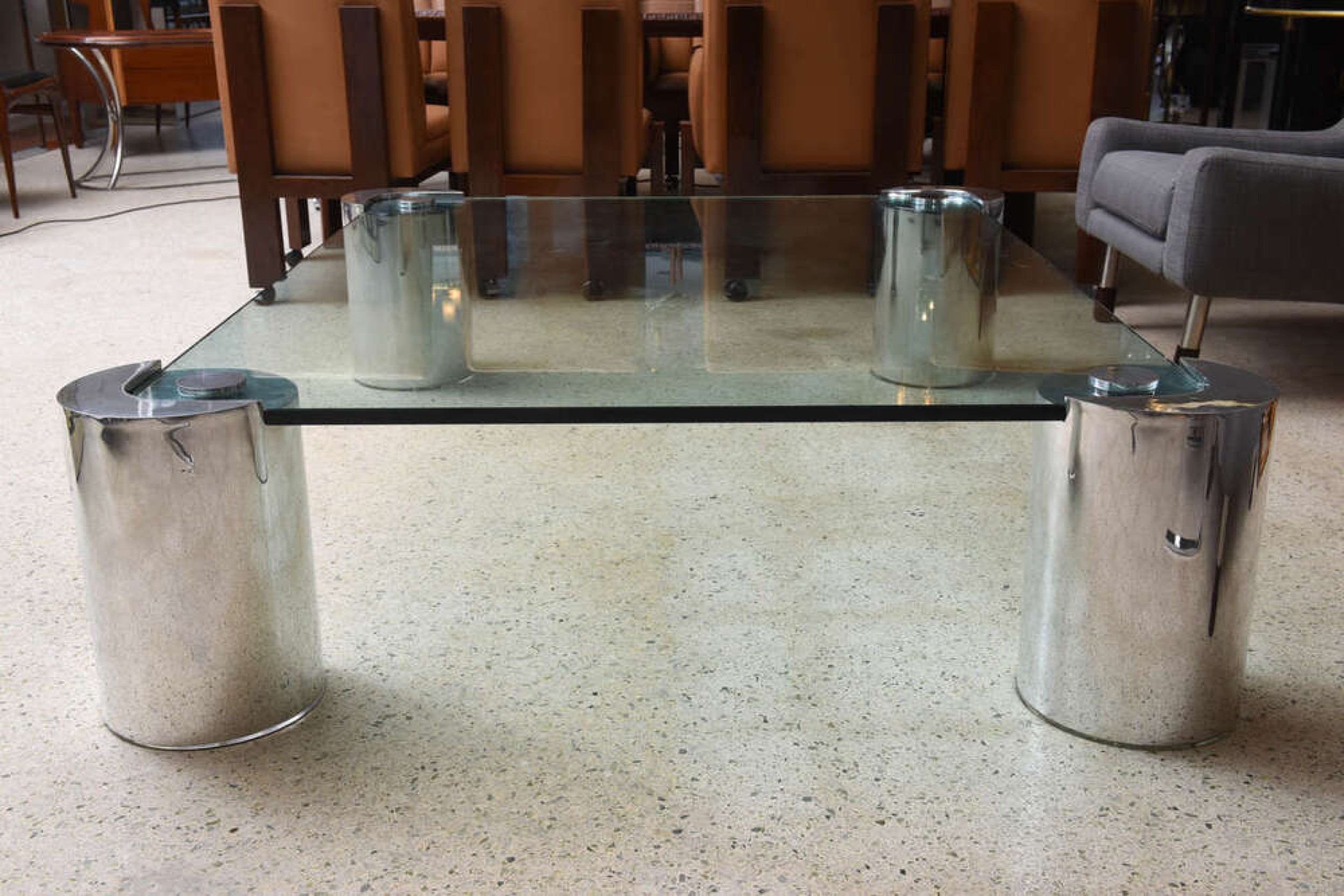 Style: Mid-Century Materials & Techniques: Chrome, glass, metal Category: Tables