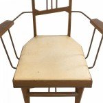 American 1930s Modernist design child's arm chair with geometric painted wood and tubular metal design with a stretcher and a white leather seat. (possibly a prototype)