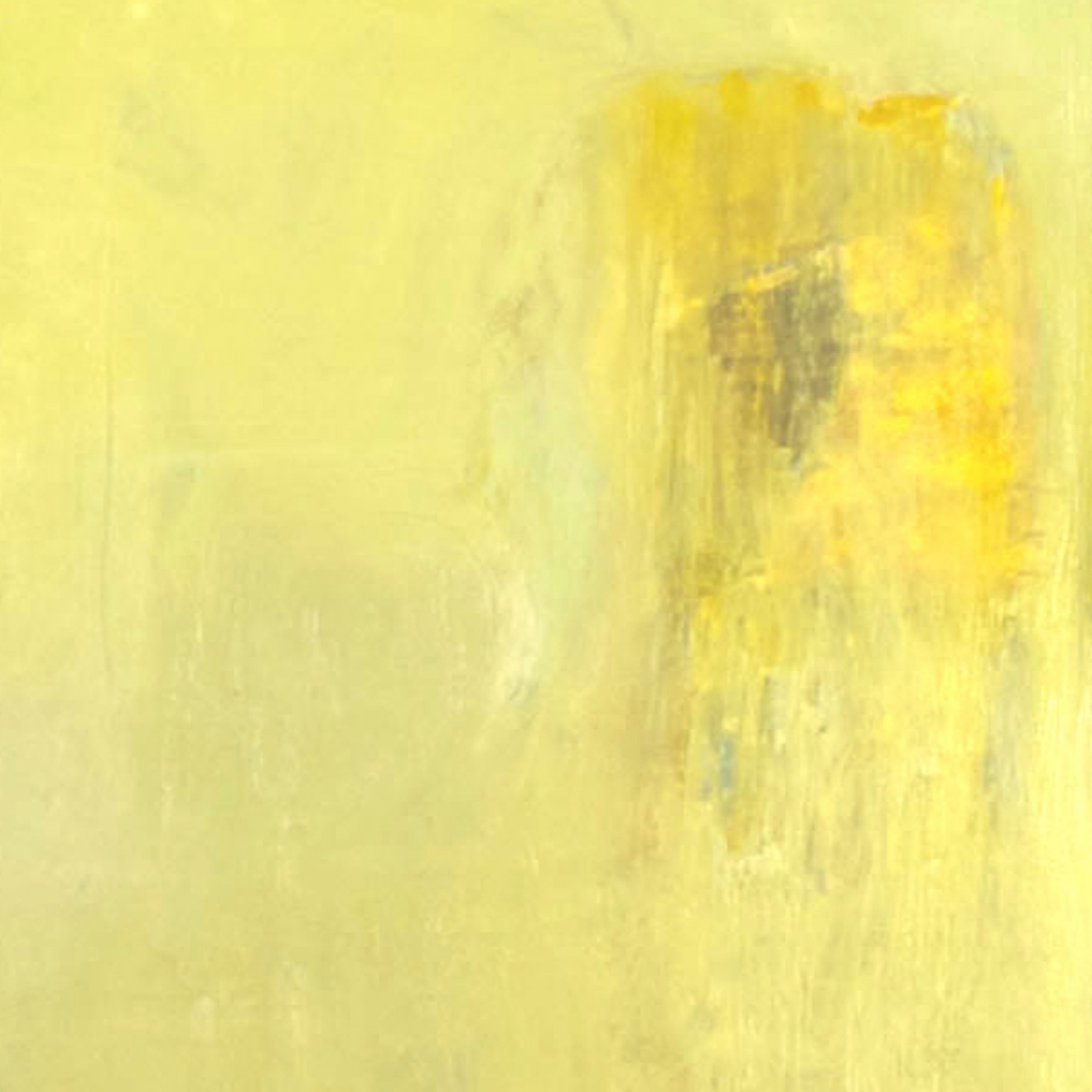 American Post-War Design abstract art, oil painting with shades of lime green in a pine frame..
