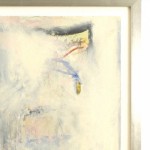 American Post-War Design abstract art, oil painting with shades of purple on white in a silver frame.