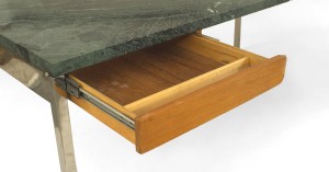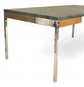 Style: Contemporary/Post-War Design Materials & Techniques: Marble, wood, chrome Category: Tables, Office/Library Condition: Shows some wear and tear.