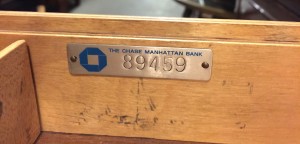 American Post-War Design (1960s) rectangular chrome base office desk with a green marble top and 2 light wood side drawers. Designed by Skidmore Owing for Chase Bank executive offices.