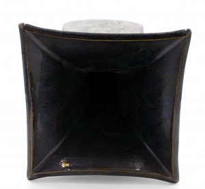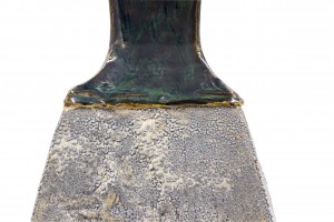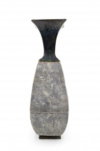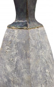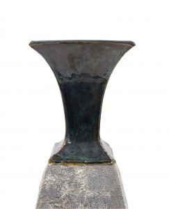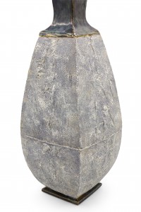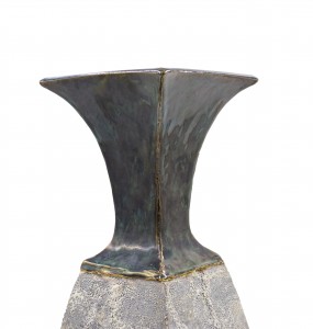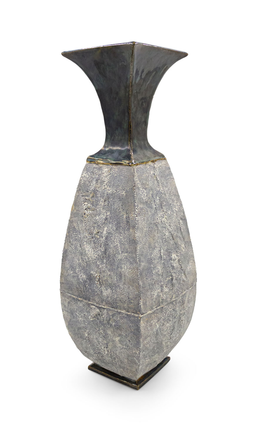 American Post-War Design large grey and white textured shaped square (2 section) base vase with a glazed tapered and flared neck (signed: GARY DIPASQUALE).