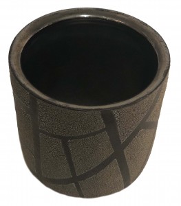 American Post-War Design Grey geometric glazed tapered cylindrical shaped ceramic and heavily textured vase (by GARY DIPASQUALE).
