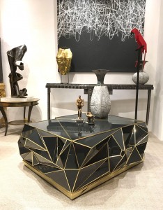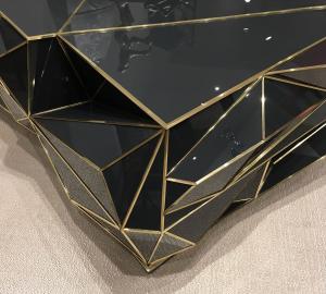 Style: Contemporary/Post-War Design Materials & Techniques: Brass, faceted, gilt / giltwood, glass, wood Category: Tables Good; Wear consistent with age and use