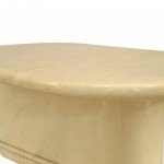 American Post-War Design (1960s) sectional parchment veneer dining table with oval top and solid oval pedestal base (2 leaves - 18" each) (Attributed to KARL SPRINGER)