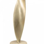 American Post-War Design small silver leaf over resin sculpture of a vertical form mounted on a white circular base (by KEVIN KELLY)
