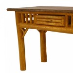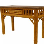 American Rustic Adirondack painted cedar table desk with twig spindle design and stained pine slat top with a center drawer.