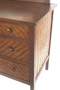 Style: Rustic Materials & Techniques: Oak, wood, woven Category: Cabinets & Case Goods, Bedroom Good; Wear consistent with age and use