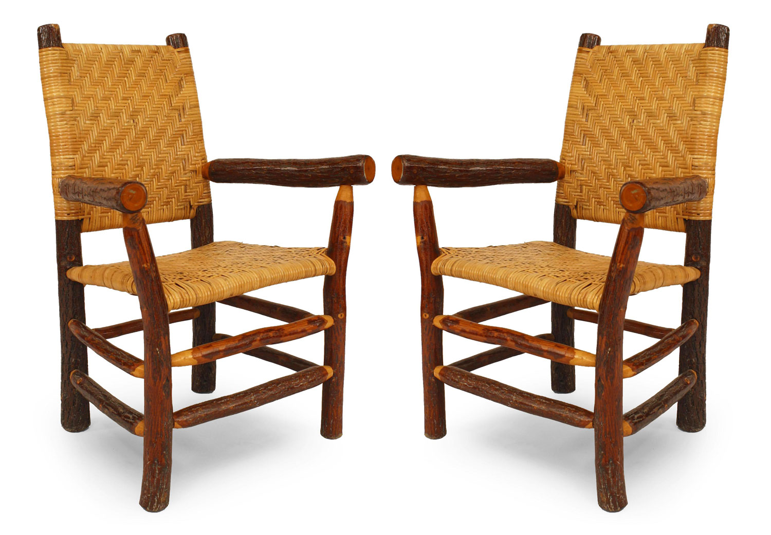 Set of 4 American Rustic Old Hickory Woven Arm Chairs