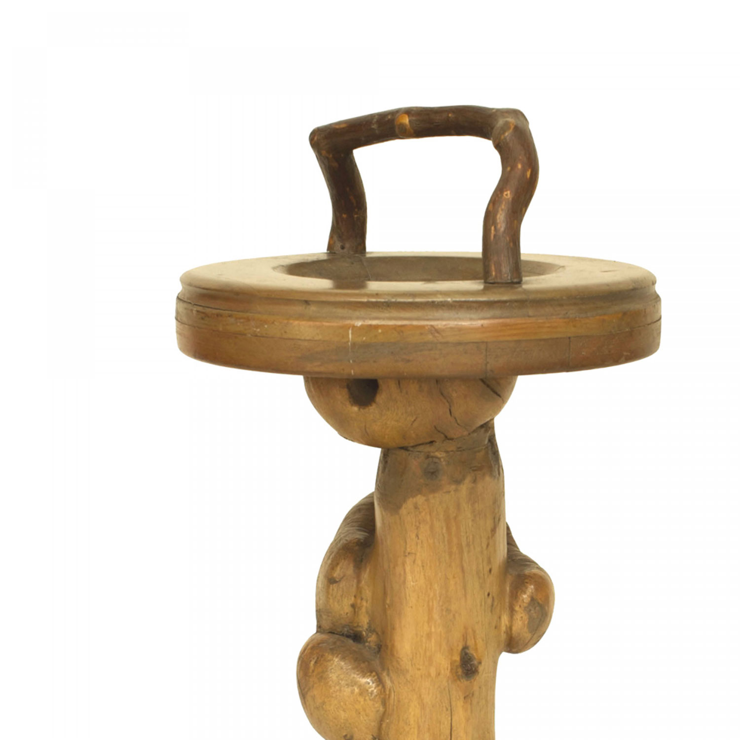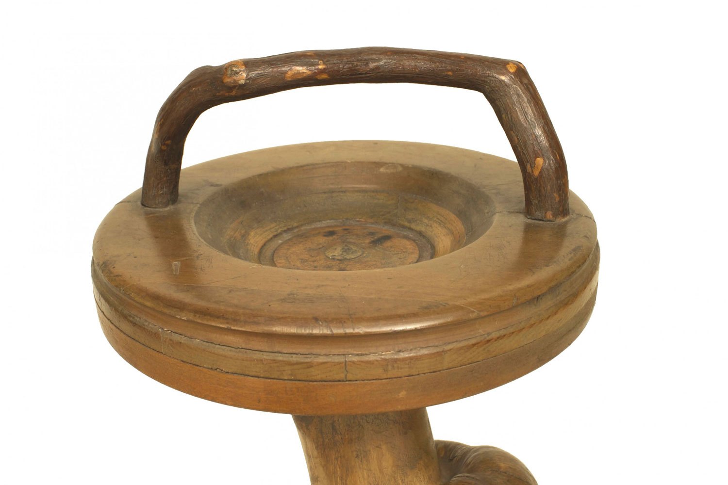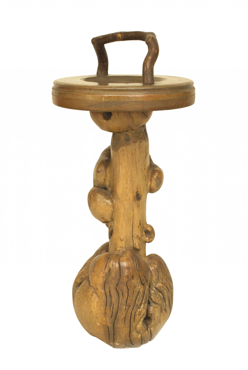 American Rustic (1930s) stand with a root form pedestal base supporting a round (ashtray) top with a handle (att: MOLESWORTH)