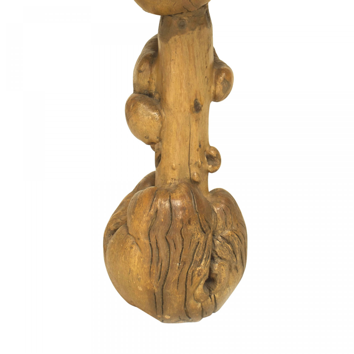 American Rustic (1930s) stand with a root form pedestal base supporting a round (ashtray) top with a handle (att: MOLESWORTH).