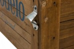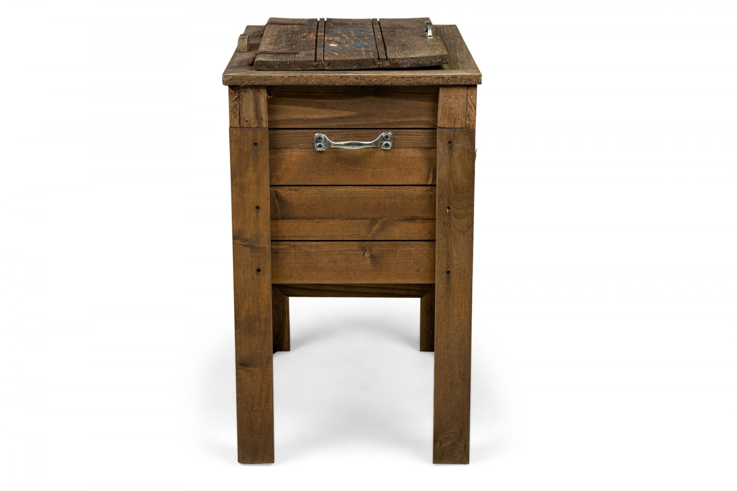 American rustic wooden cooler chest with metal interior. (branded, MODELO)