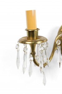 American Victorian Style Bronze and Crystal Wall Sconces