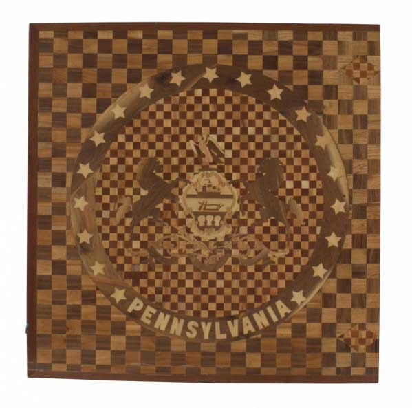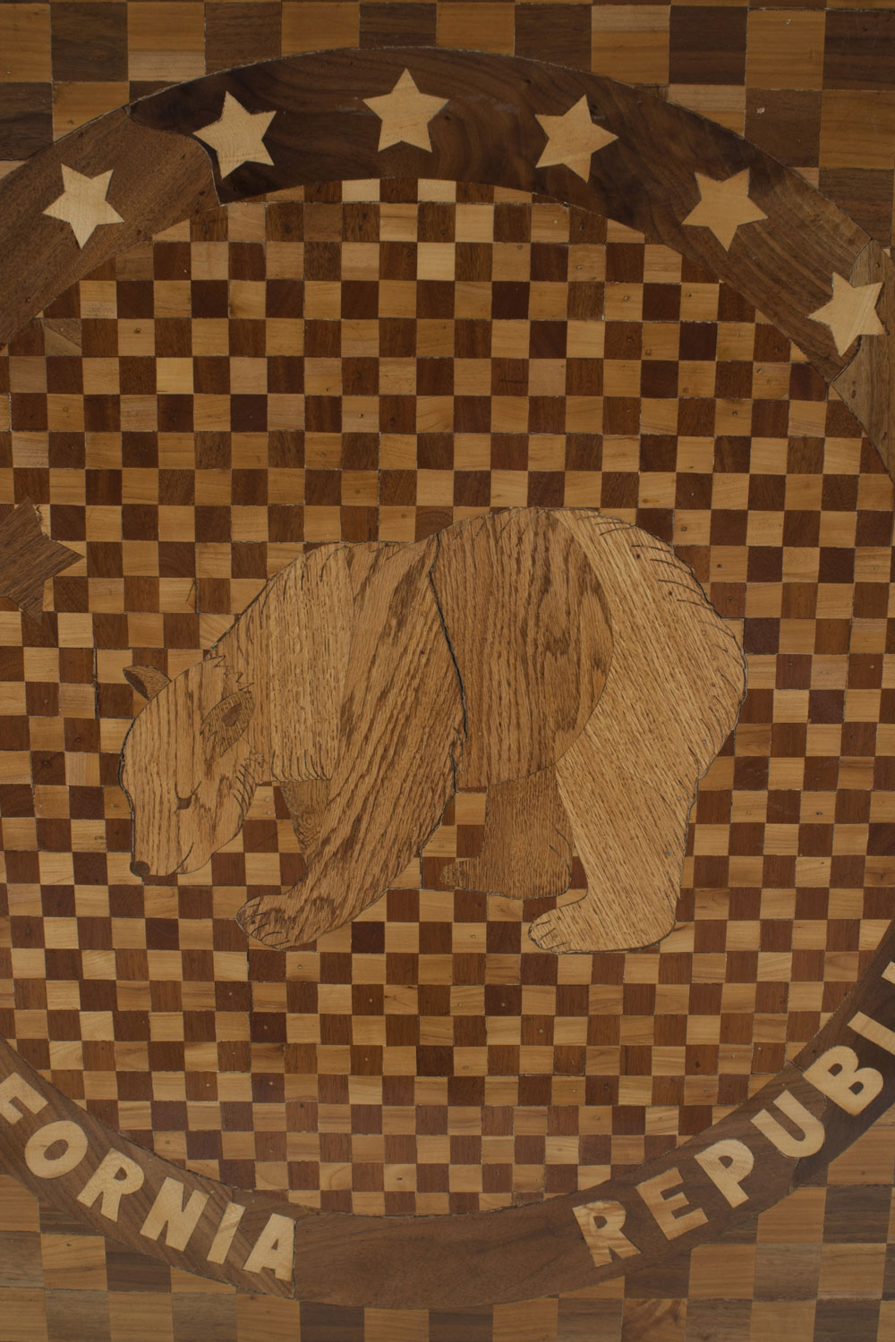 American Victorian (19th Century) large inlaid square panel showing the seal of California from the flooring of the central rotunda of the California State Capitol in Sacramento (Related items: REG3884-Seal of the United States, REG3884B-Seal of Pennsylvania)..