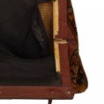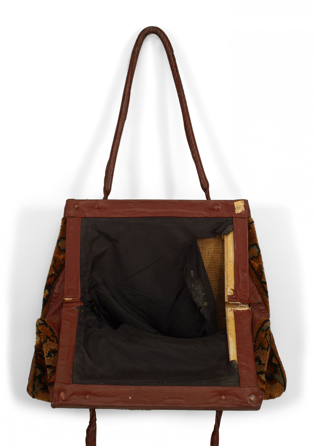 American Victorian carpet bag with red leather trim and shoulder handles..