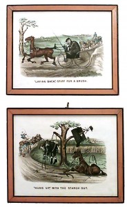 SET of 6 American Victorian maple framed 19th Century colored lithographs of figures and horses (signed THOS. WORTH)