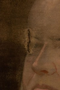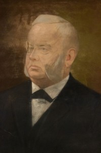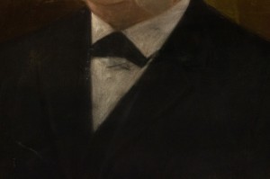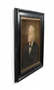 American Victorian pastel portrait of a gentleman wearing a white shirt under a black jacket with mutton chop sideburns in a black frame with gold inset (AS IS).