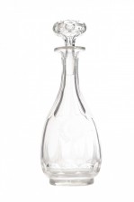 American Victorian-style vintage glass decanter with fluting that begins above the center narrowing to the neck having an etched "W" in a wreath with a cut glass stopper.