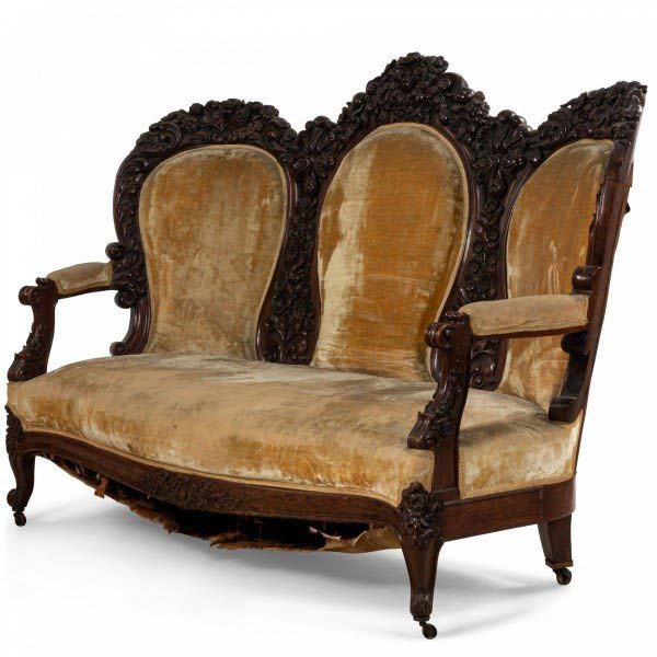 Style: American Materials & Techniques: Fringe, gold, tufted, upholstered, velvet Category: Seating