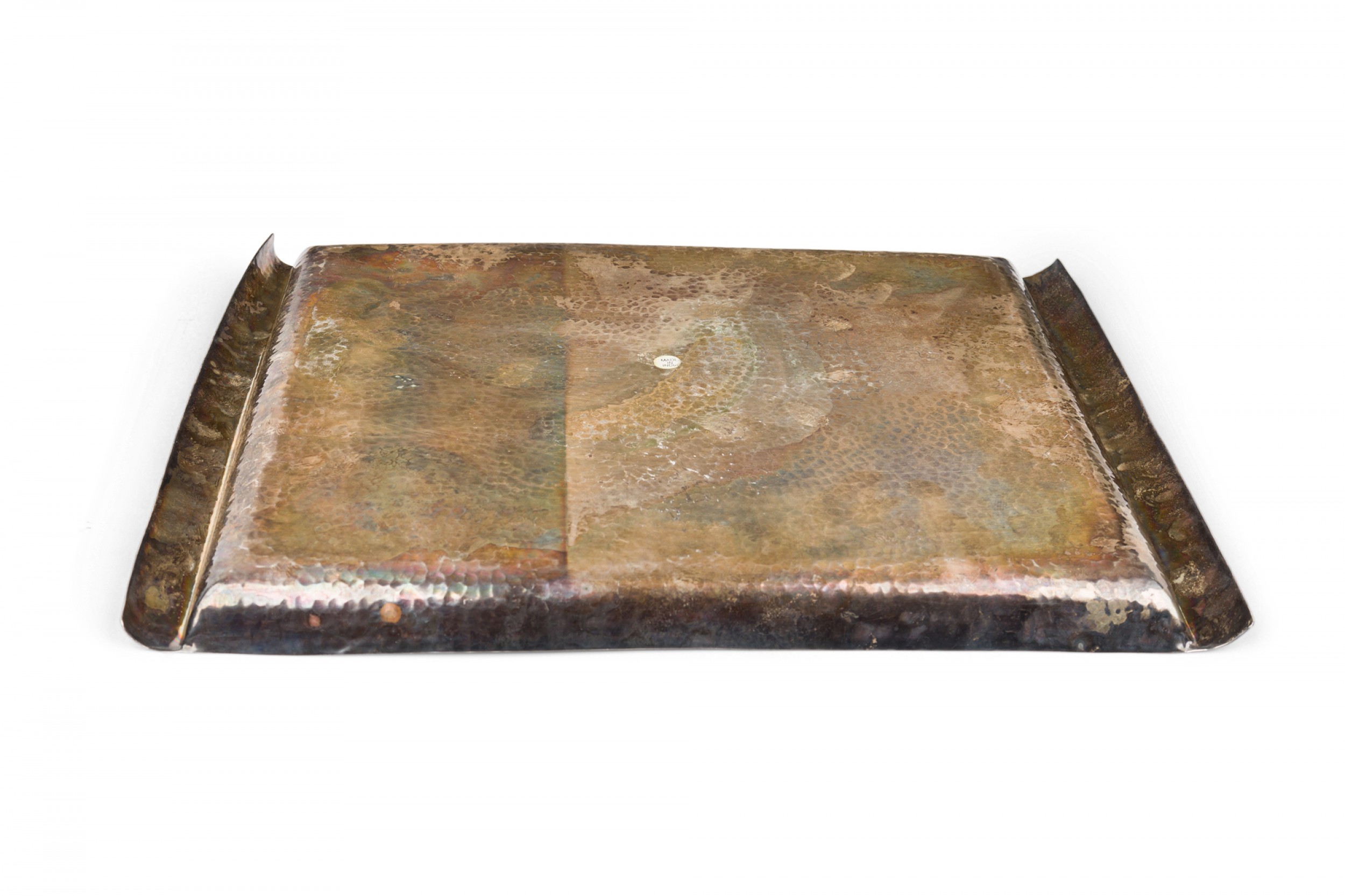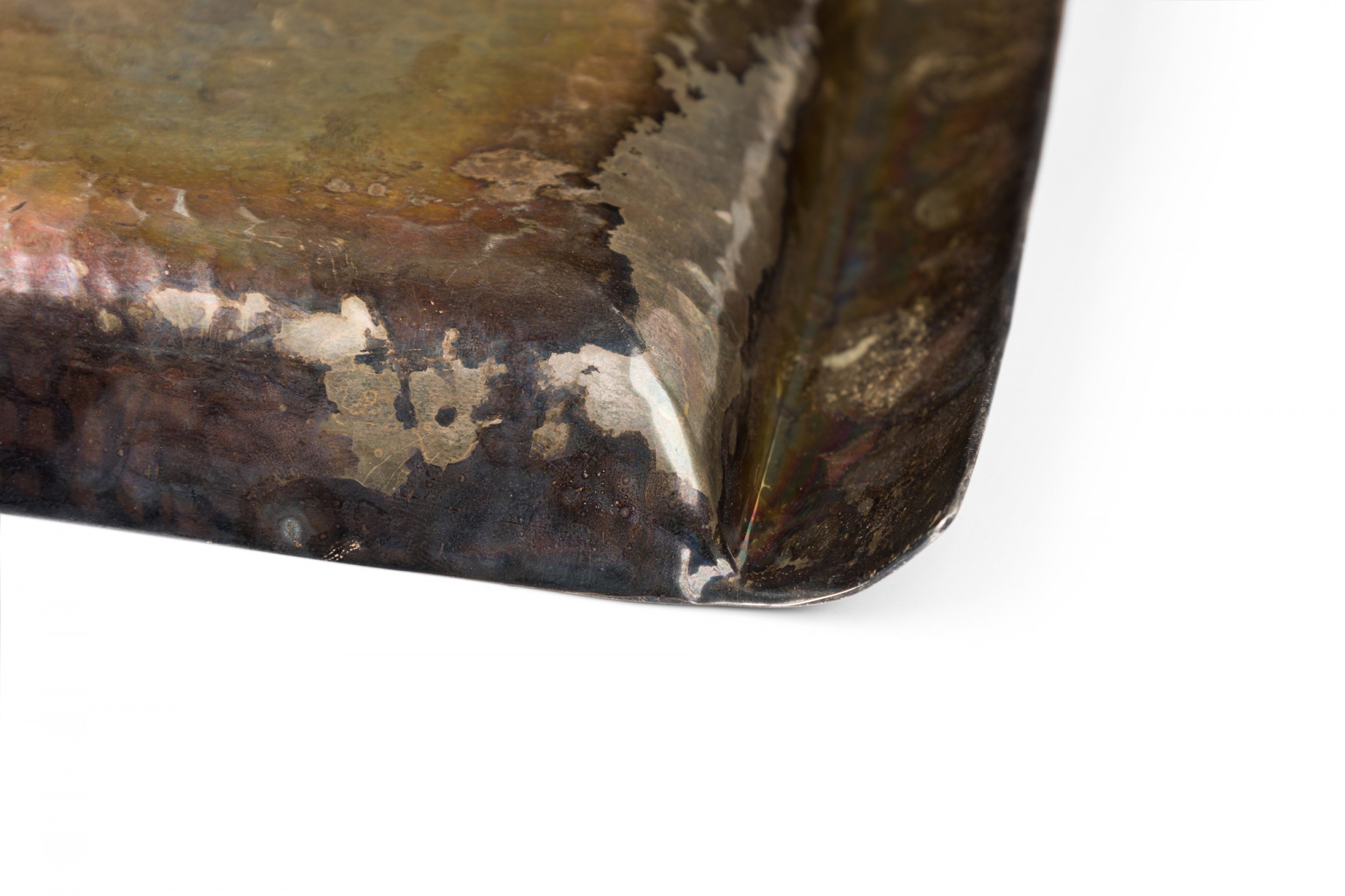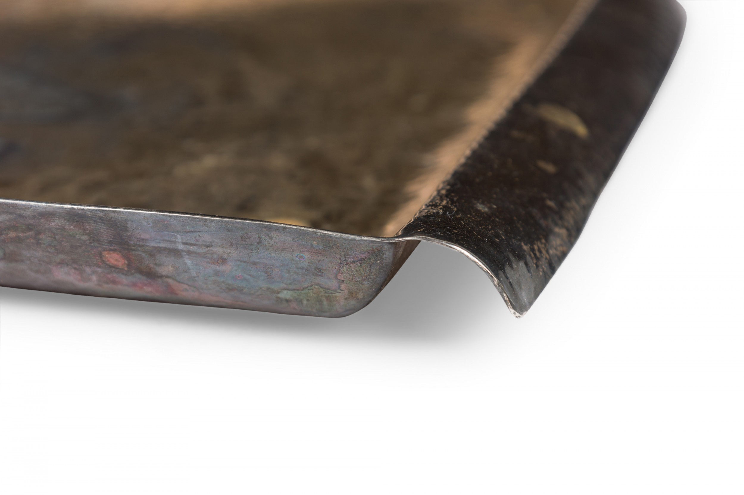 American Victorian style hammered metal butlers serving tray with naturally formed patina